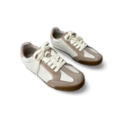 Los tenis para mujer de Maroc fusionan estilo urbano y elegancia atemporal. Con un diseño minimalista realzado por un aplique metálico dorado con el logo de la marca en la parte trasera, este calzado aporta un toque distintivo y sofisticado a tus looks casuales.Elaborados en 100% cuero vacuno liso y gamuza, destacan por su suavidad, resistencia y acabado premium. Su suela antideslizante en caucho ofrece excelente tracción y comodidad para el uso diario, mientras que el cordón encerado añade un detalle elegante y asegura un ajuste perfecto. La punta redonda y la horma normal brindan confort durante todo el día, convirtiéndolos en una opción versátil que combina perfectamente con jeans, vestidos o conjuntos casual chic.