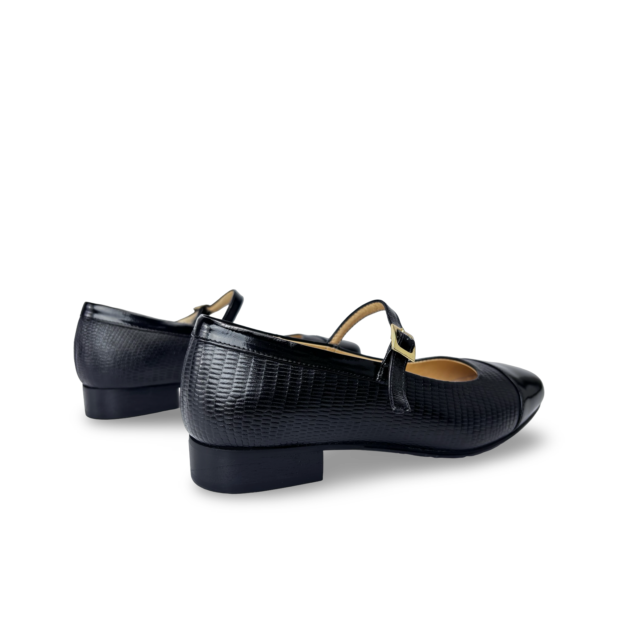 - Tipo: Zapato plano con tacón bajo