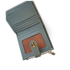 • Compartimentos: Un compartimento para guardar billetes, 6 compartimentos para tarjetas o documentos + un compartimento con ventanilla, y cuenta con un monedero de cierre con cremallera en el costado