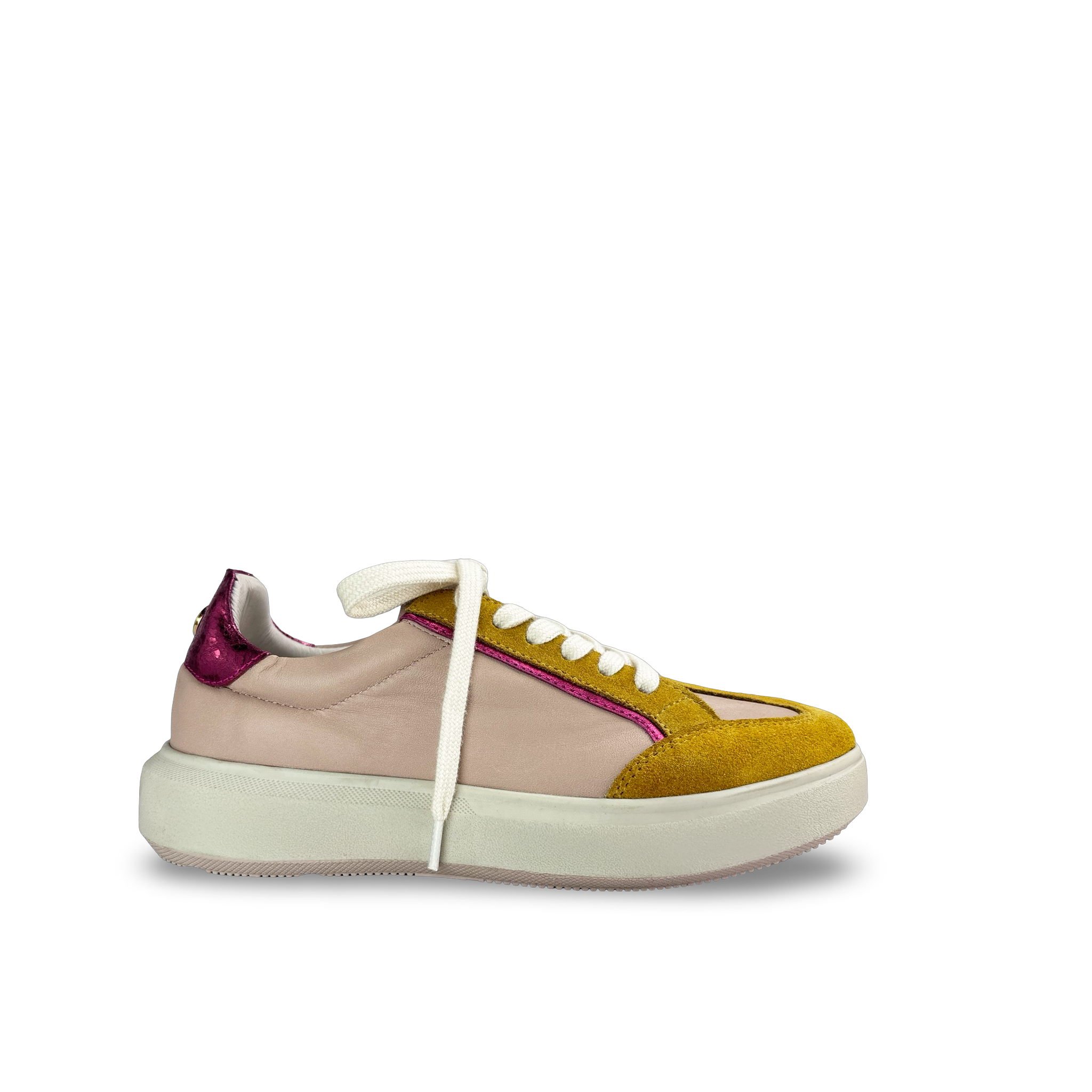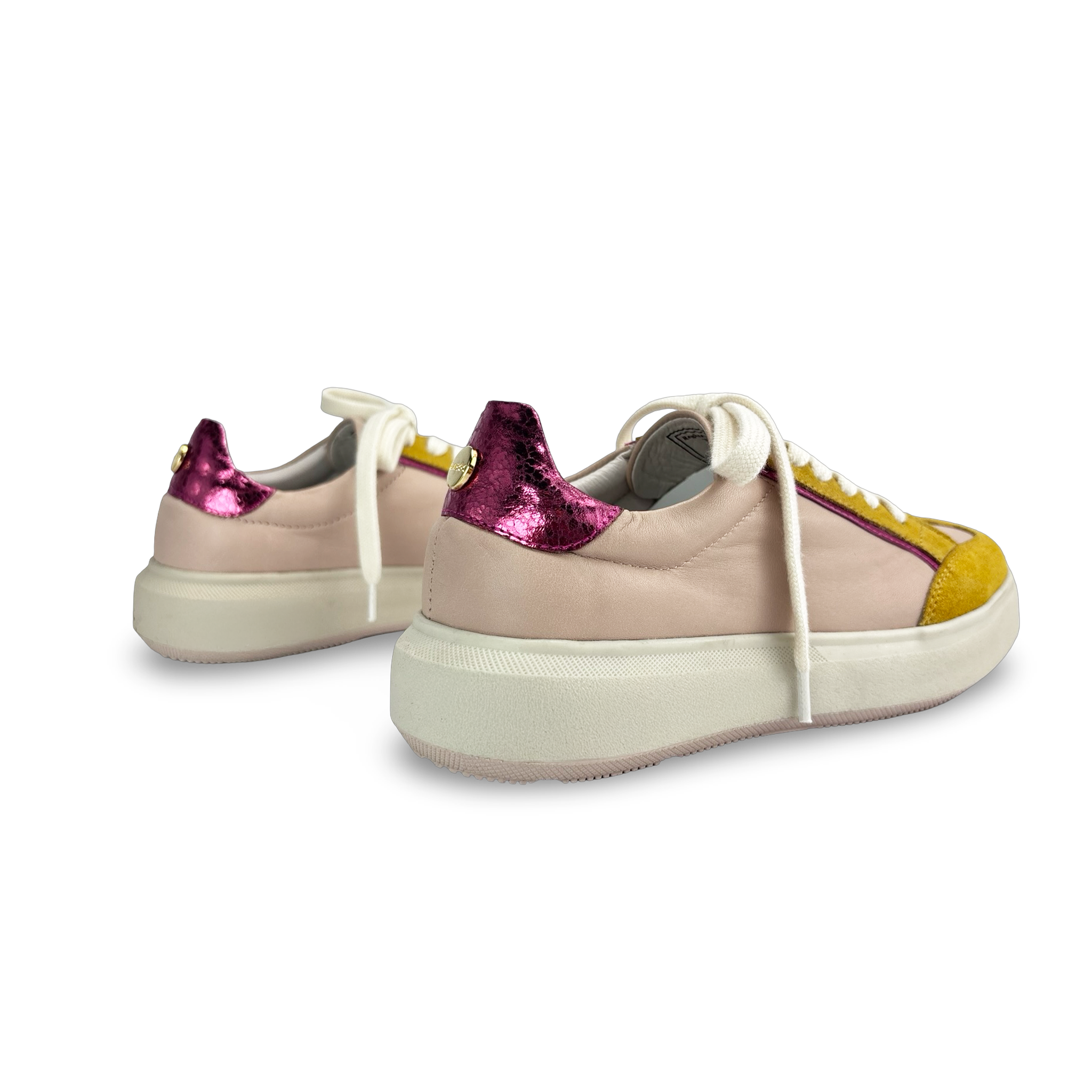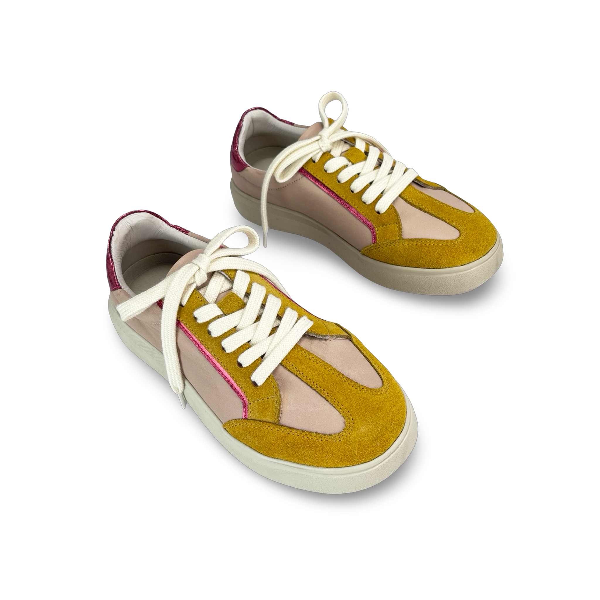 Los tenis para mujer de Maroc fusionan estilo urbano y elegancia atemporal. Con un diseño minimalista realzado por un aplique metálico dorado con el logo de la marca en la parte trasera, este calzado aporta un toque distintivo y sofisticado a tus looks casuales.Elaborados en 100% cuero vacuno liso y gamuza, destacan por su suavidad, resistencia y acabado premium. Su suela antideslizante en caucho ofrece excelente tracción y comodidad para el uso diario, mientras que el cordón encerado añade un detalle elegante y asegura un ajuste perfecto. La punta redonda y la horma normal brindan confort durante todo el día, convirtiéndolos en una opción versátil que combina perfectamente con jeans, vestidos o conjuntos casual chic.