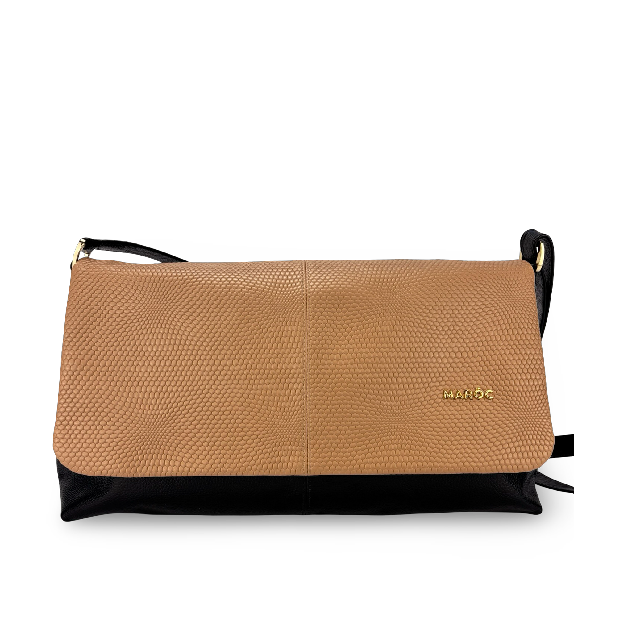 Luce un estilo moderno y versátil con el bolso manos libres con solapa Maroc, elaborado en 100% cuero vacuno grabado y liso. Su diseño funcional combina elegancia y practicidad, ideal para el día a día. Cuenta con un amplio compartimento principal, bolsillo interno abierto y cierre doble con cremallera y broche magnético, que brindan seguridad y organización. Su correa ajustable con hebilla metálica permite llevarlo cruzado o al hombro según tu estilo. Dimensiones aproximadas: Alto 21 cm x Ancho 35 cm x Fondo 10 cm