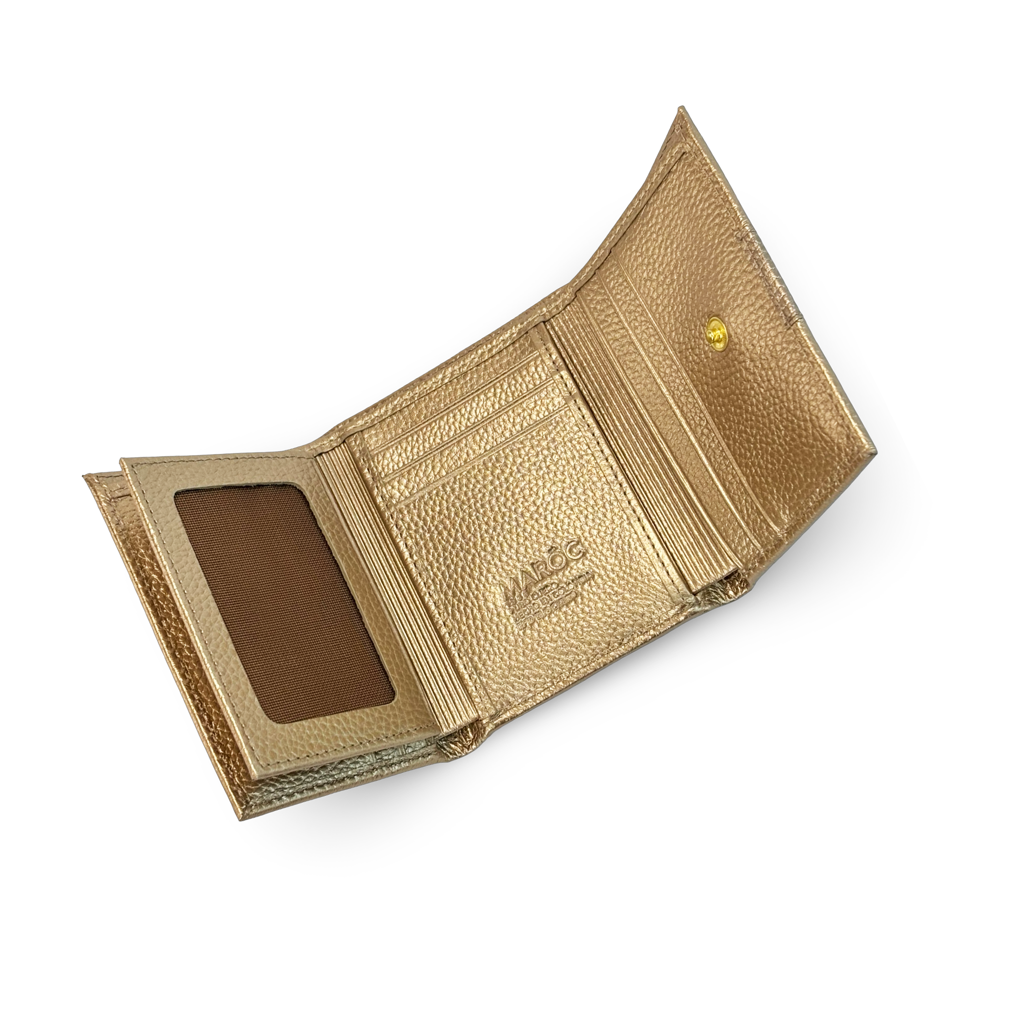 • Tipo: Billetera para mujer con aplique dorado metálico logo marca Maroc en la parte frontal de la billetera
