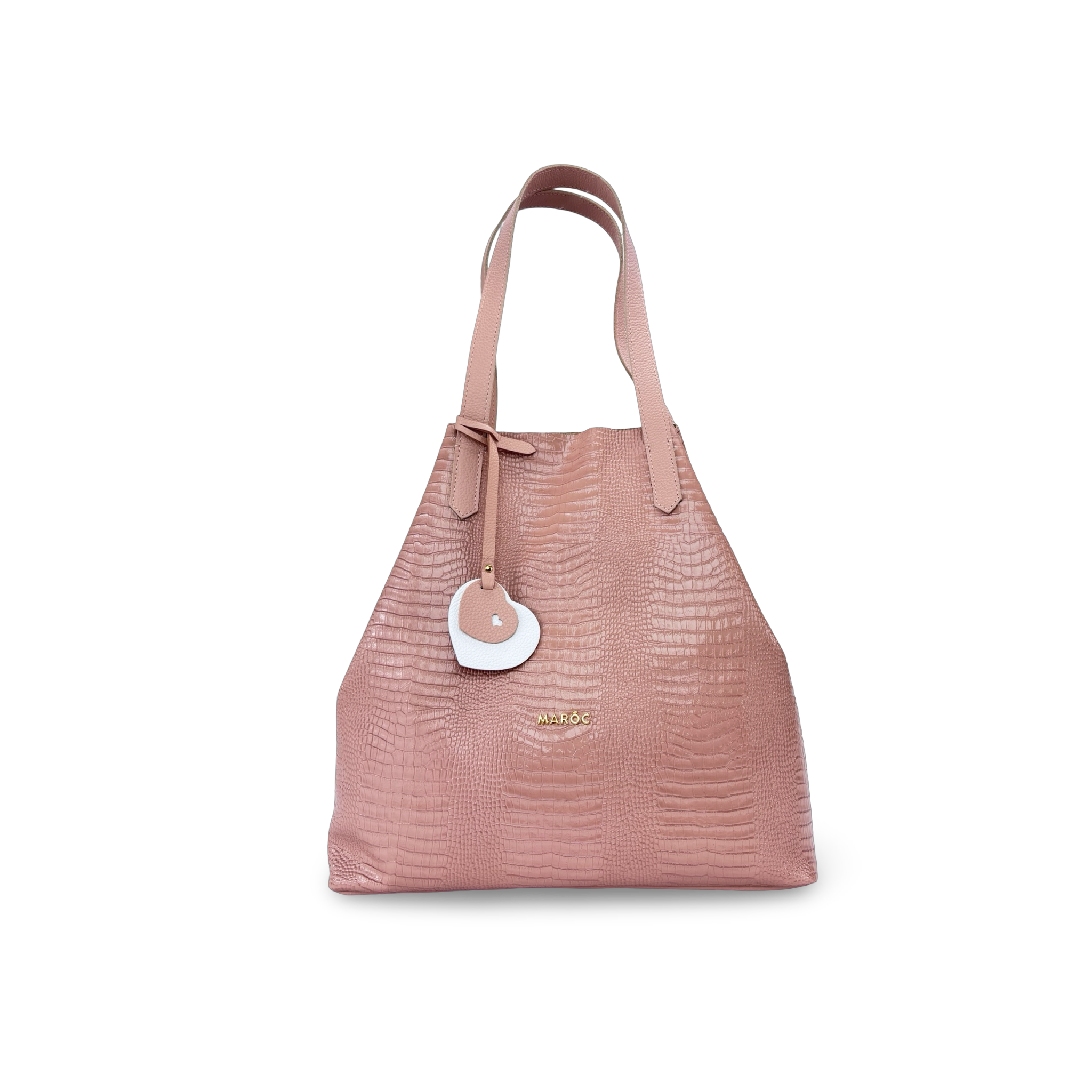 - Tipo: Bolso Tote con herraje decorativo frontal marca Maroc y charm decorativo de corazones