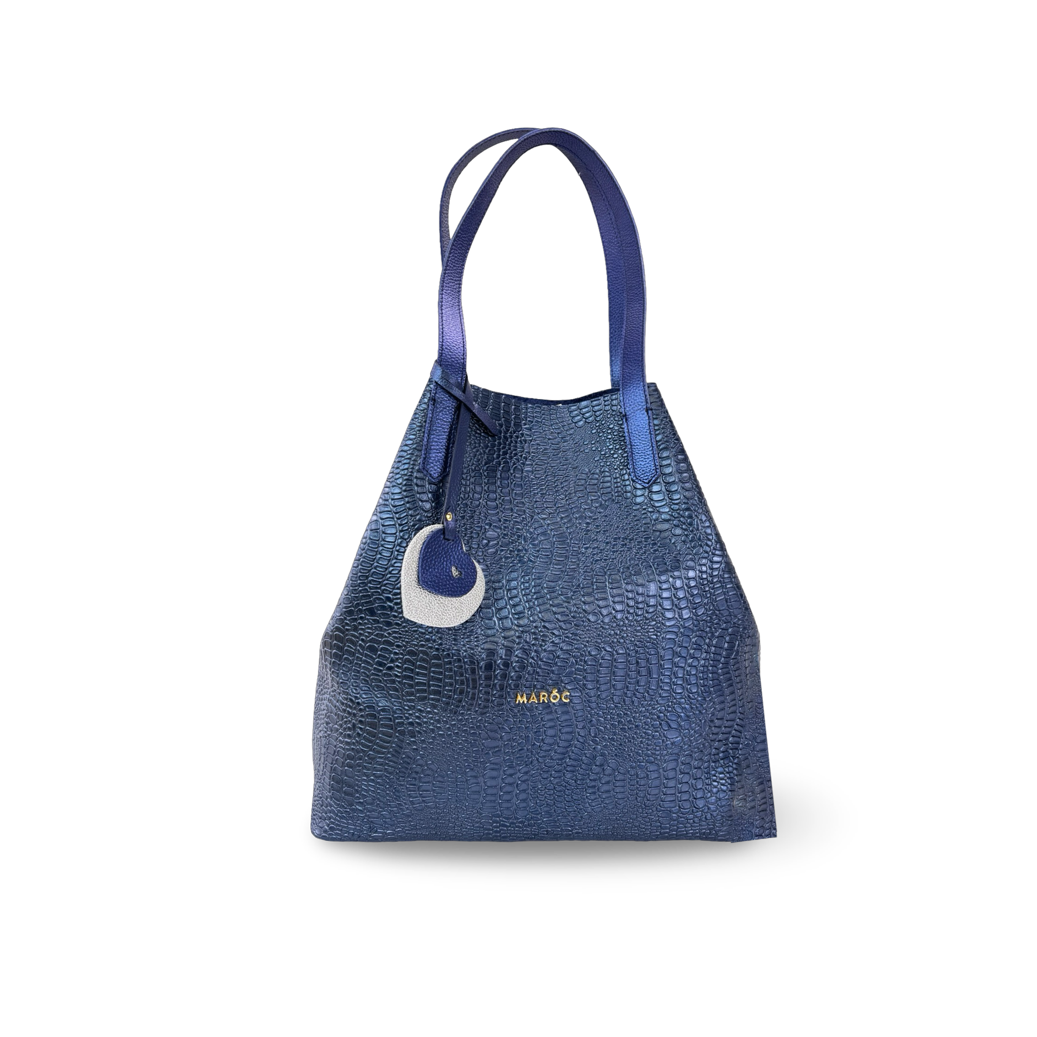 Elegante y moderno, este bolso Tote está elaborado en 100% cuero vacuno grabado y metalizado, con herrajes en zamak que aportan durabilidad y estilo premium. Su diseño incluye charm decorativo de corazones y herraje frontal con la marca MAROC, que realzan su sofisticación. Con dimensiones aproximadas de 30 x 30 x 15 cm, cuenta con compartimento interno para guardar el celular y mosquetones de ajuste que permiten transformar la estructura del bolso según tu estilo y necesidad. Hecho en Colombia, combina funcionalidad, versatilidad y diseño exclusivo.
