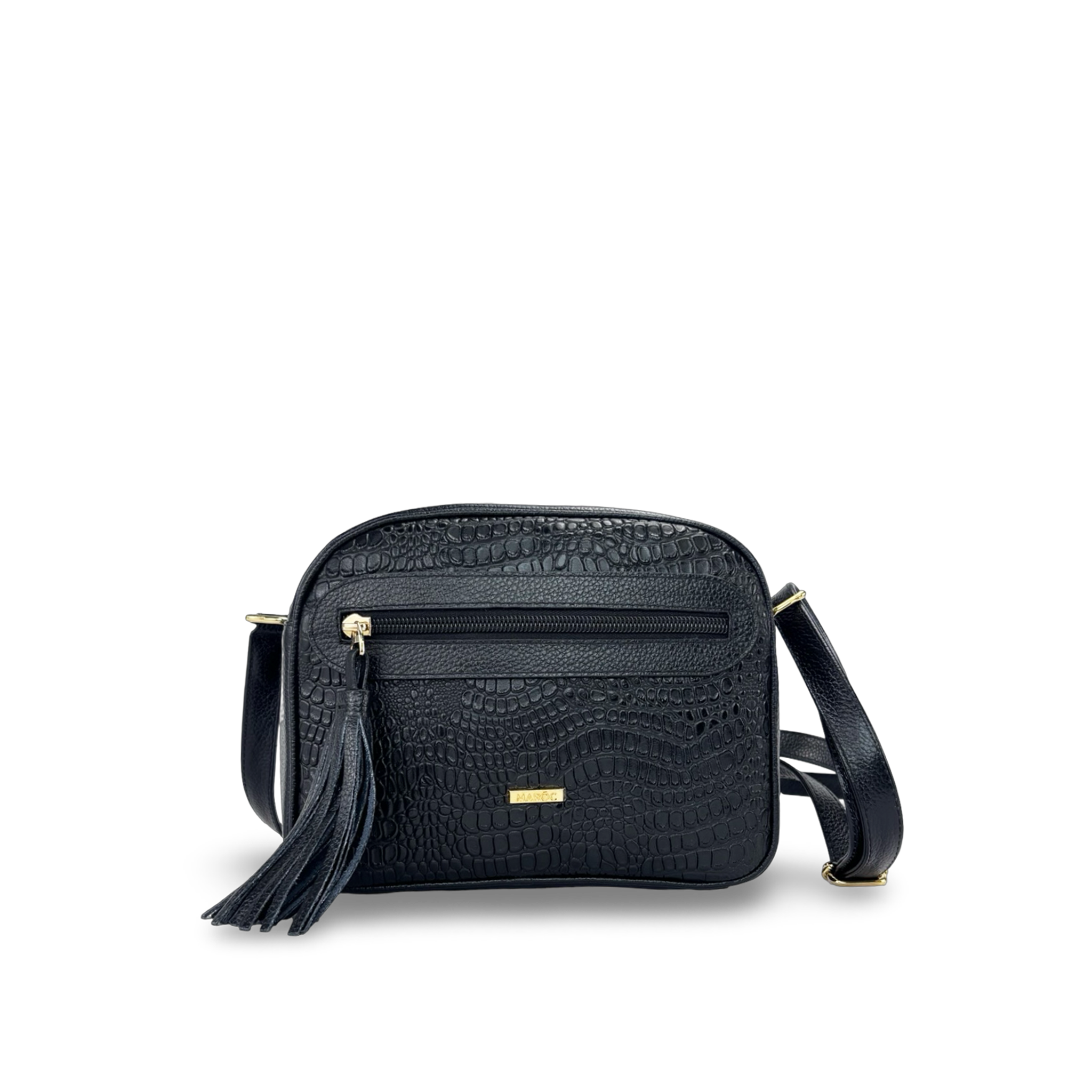 Este práctico bolso manos libres está elaborado en 100% cuero vacuno liso y repujado, con herrajes en zamak que aportan resistencia y un acabado sofisticado. De diseño compacto con dimensiones aproximadas (17 x 17 x 10 cm), cuenta con bolsillo frontal con cremallera y borla decorativa, bolsillo interno tipo monedero y bolsillo trasero con cierre de cremallera, ideales para llevar tus objetos personales de forma segura. Su correa ajustable con corredera permite usarlo cómodamente cruzado, perfecto para quienes buscan comodidad, estilo y funcionalidad en un accesorio pequeño y versátil. Hecho en Colombia.