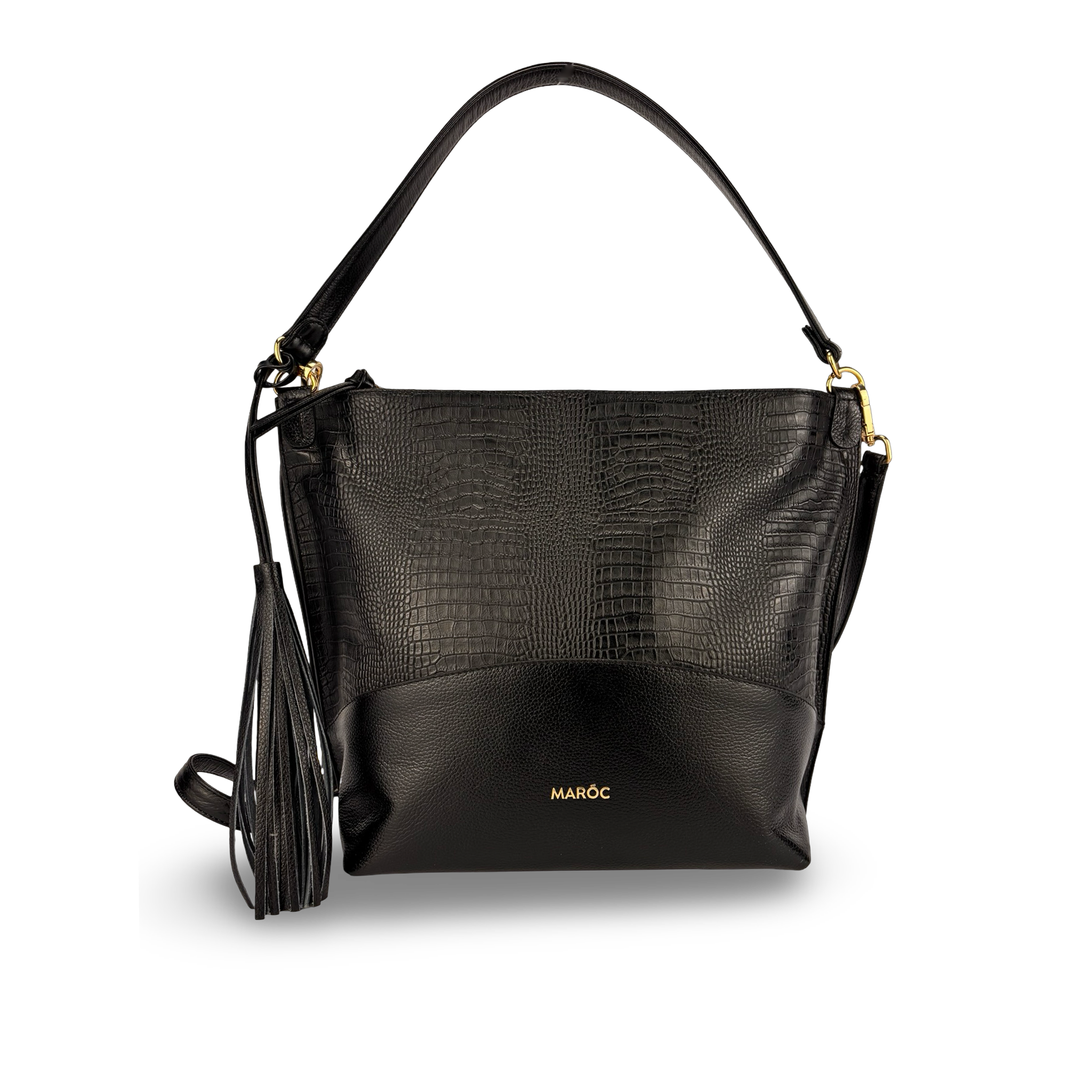 Bolso de mujer confeccionado en cuero vacuno de alta calidad con terminación grabada, ideal para quienes buscan estilo y durabilidad. Este bolso cuenta con un cierre de cremallera seguro y un diseño práctico, que incluye una asa plana y una correa bandolera ajustable y removible, para mayor comodidad al llevarlo.