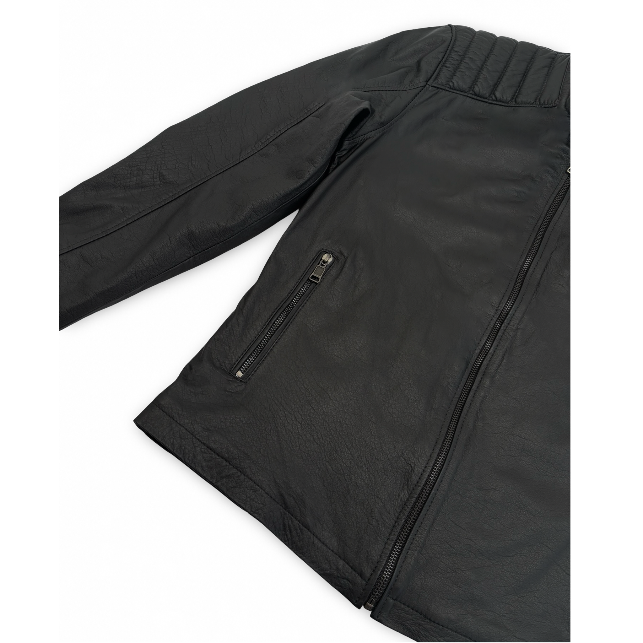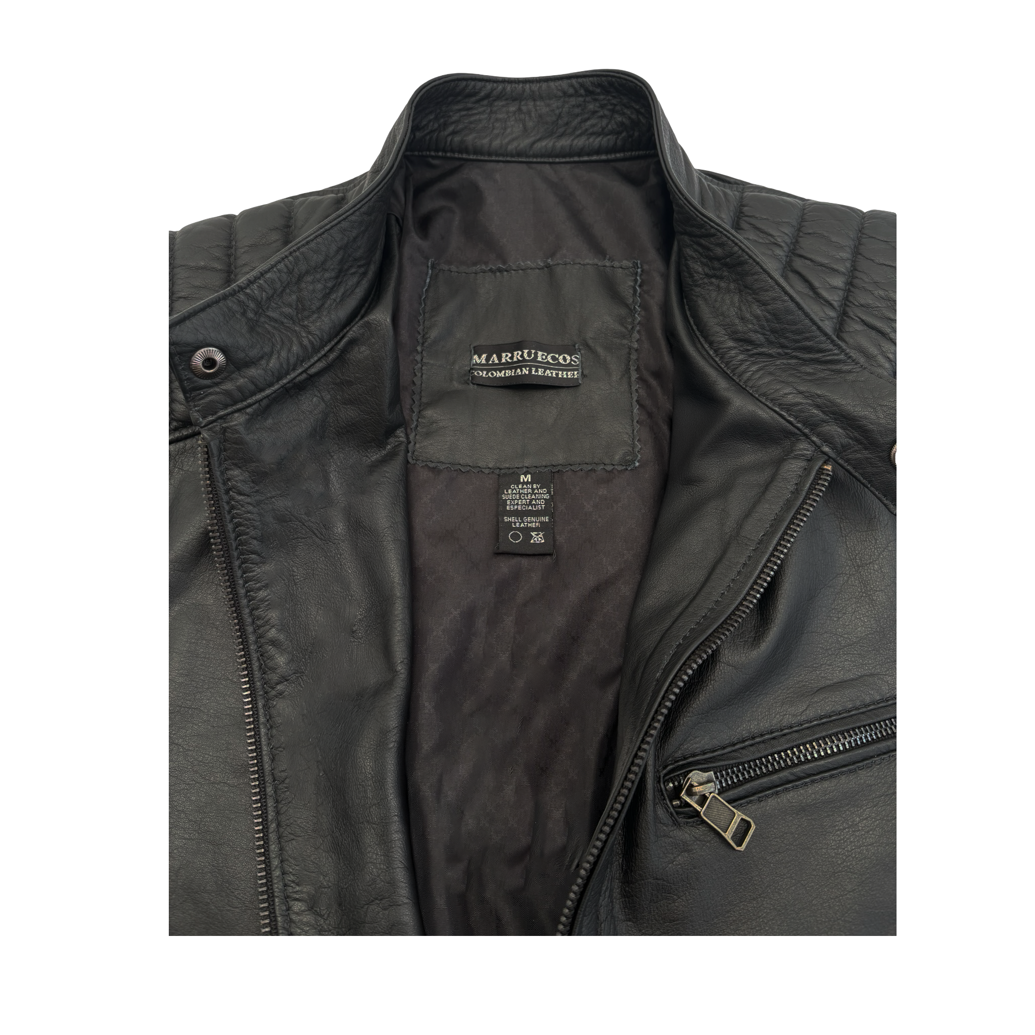 Una prenda moderna y ajustada al cuerpo, perfecta para elevar cualquier look casual. Su diseño incluye cierre frontal con cremallera, dos bolsillos laterales con cierre, un bolsillo superior diagonal, además de un bolsillo interno con cremallera y otro abierto para mayor seguridad y organización. Fabricada en Colombia en cuero vacuno liso, con forro en poliéster y herrajes duraderos. Disponible en tallas M, L y XL.
