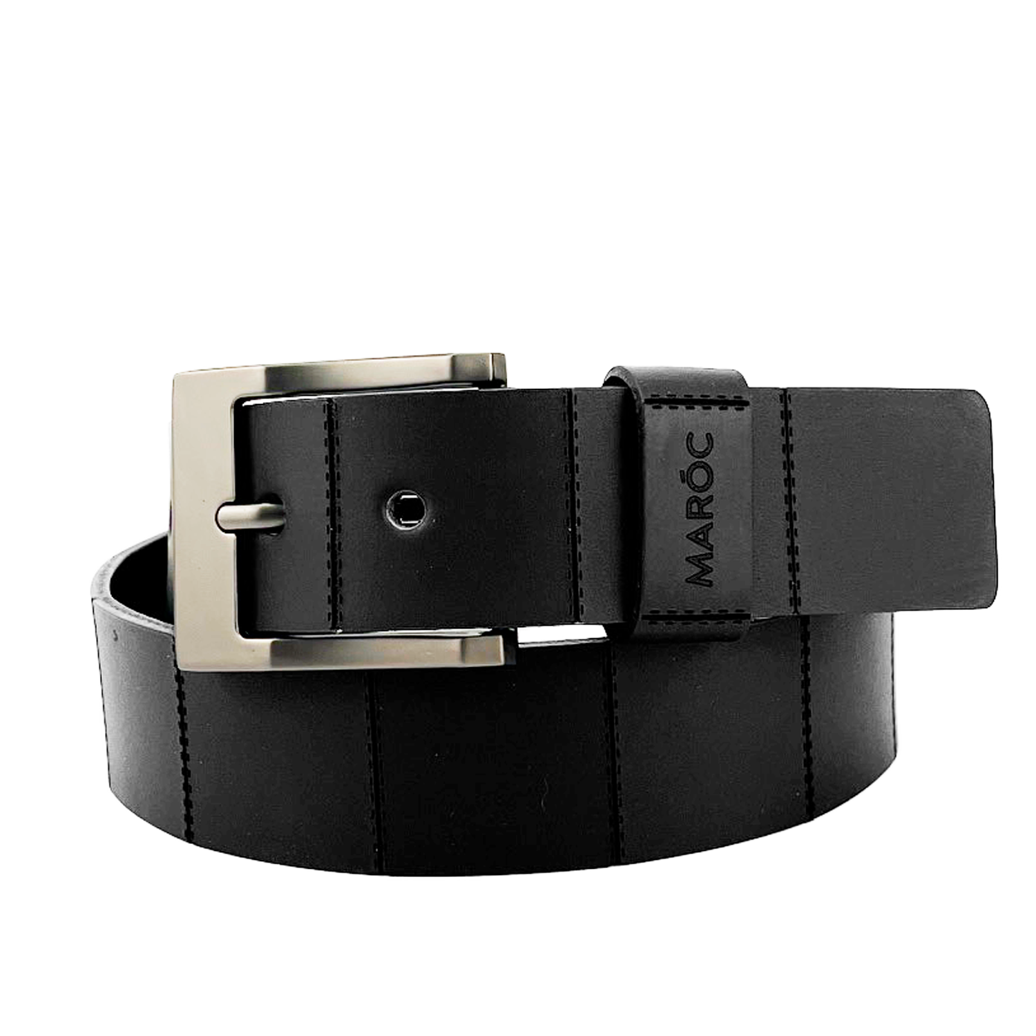 Casual men's belt in cowhide; 38MM chrome buckle; Finish: two-tone smooth leather with exclusive design that gives it a unique and different touch; two-tone leather barrette that complements its strap; Maroc Brand