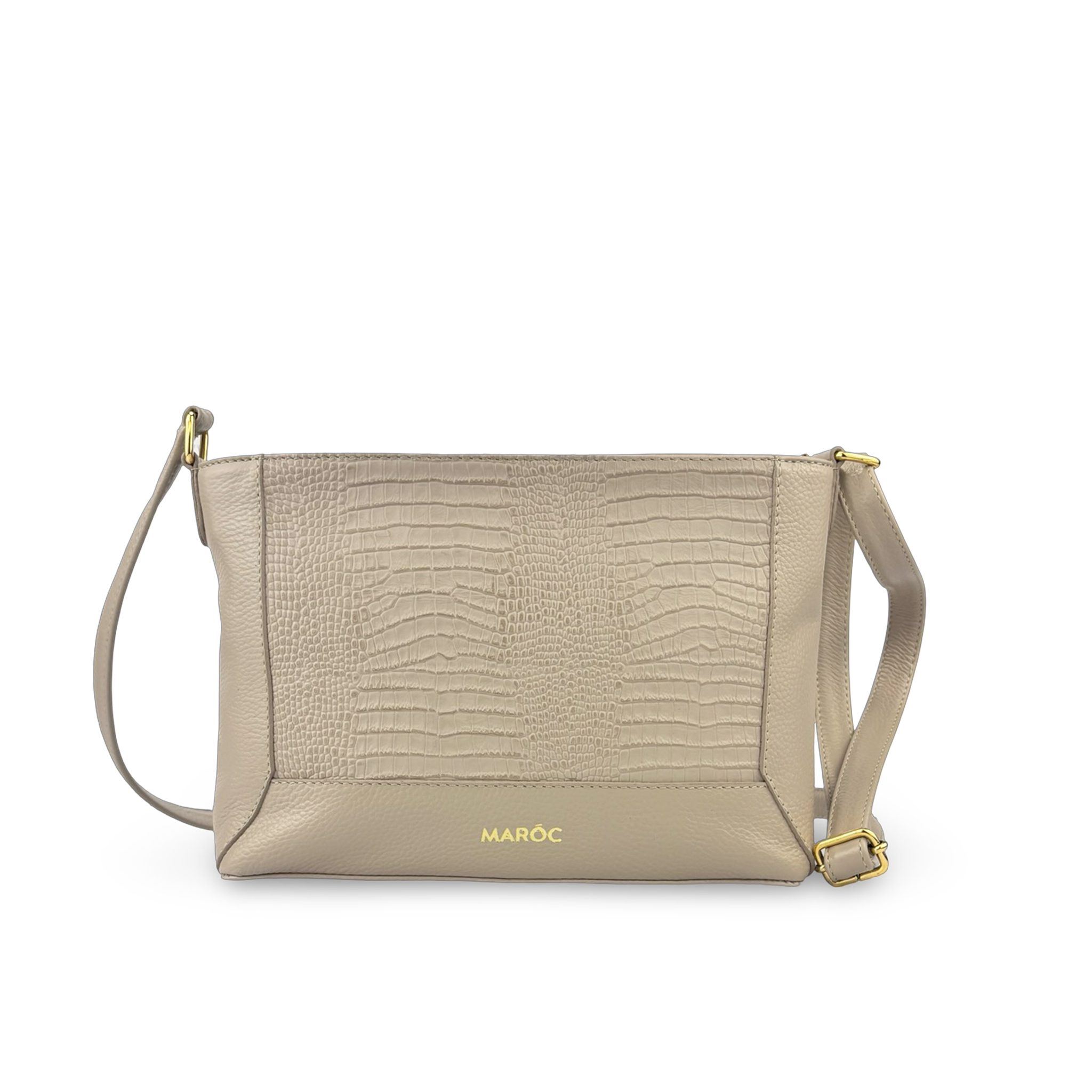 El bolso manos libres para mujer Maroc combina elegancia, practicidad y diseño artesanal colombiano. Confeccionado en 100% cuero vacuno grabado, destaca por su textura sofisticada y su aplique dorado con el logo de la marca en la parte frontal. Su diseño compacto ofrece un amplio compartimento principal, bolsillos internos funcionales para organizar tus esenciales y un bolsillo posterior con cremallera para mayor seguridad. Incluye correa graduable para llevarlo cruzado o al hombro, brindando comodidad y estilo en cualquier ocasión. Perfecto para quienes buscan un accesorio versátil, moderno y duradero.