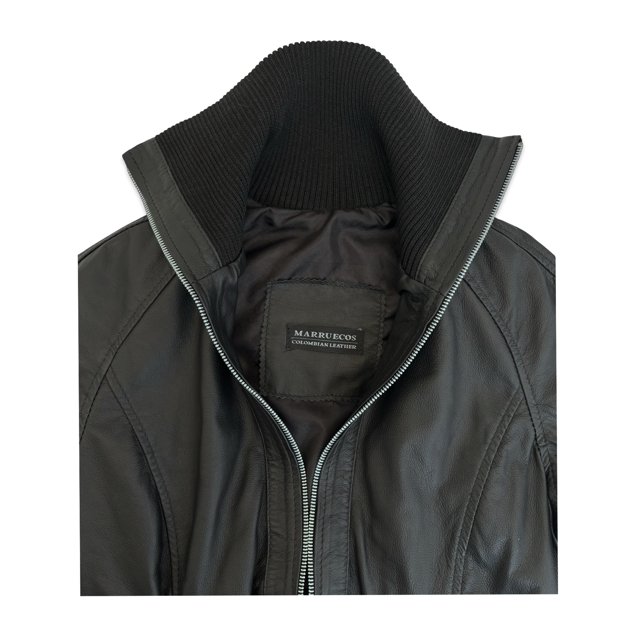 Una prenda moderna y sofisticada que estiliza la figura y eleva cualquier look, ideal para salidas nocturnas o outfits casuales. Su diseño incluye cuello RIB acanalado, bolsillo interno con cierre de cremallera y detalle de la marca Marruecos en la parte interna. El cierre frontal de cremallera aporta comodidad y un acabado limpio y contemporáneo. Fabricada en Colombia en cuero vacuno liso, con forro en poliéster y herrajes resistentes. Disponible en tallas S, M y L.