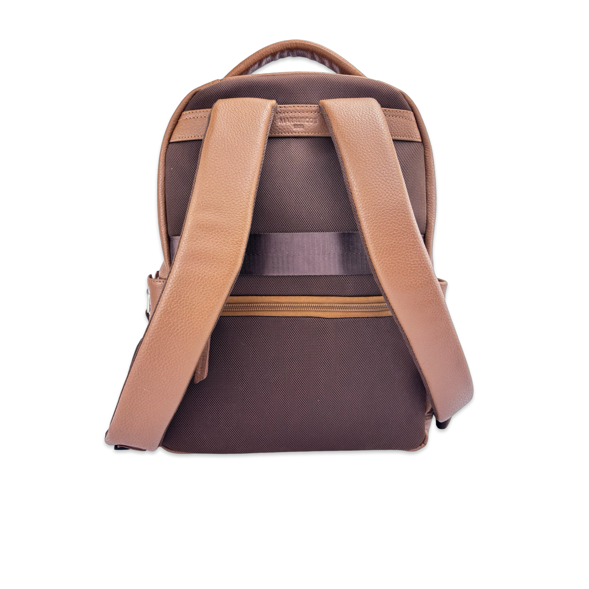 Un diseño moderno y práctico ideal para llevar lo esencial a la oficina o la universidad. Cuenta con un compartimento principal, bolsillo interno con cierre para mayor seguridad, porta esferos, bolsillo abierto, un bolsillo externo con cierre y espacio para laptop de hasta 14". Incluye correa para anclar a la maleta de viaje, aportando comodidad en desplazamientos. Fabricado en Colombia en cuero vacuno grabado y liso, con forro en poliéster y herrajes duraderos. Dimensiones aproximadas: Alto 31 cm x Ancho 30 cm x Fondo 9 cm.