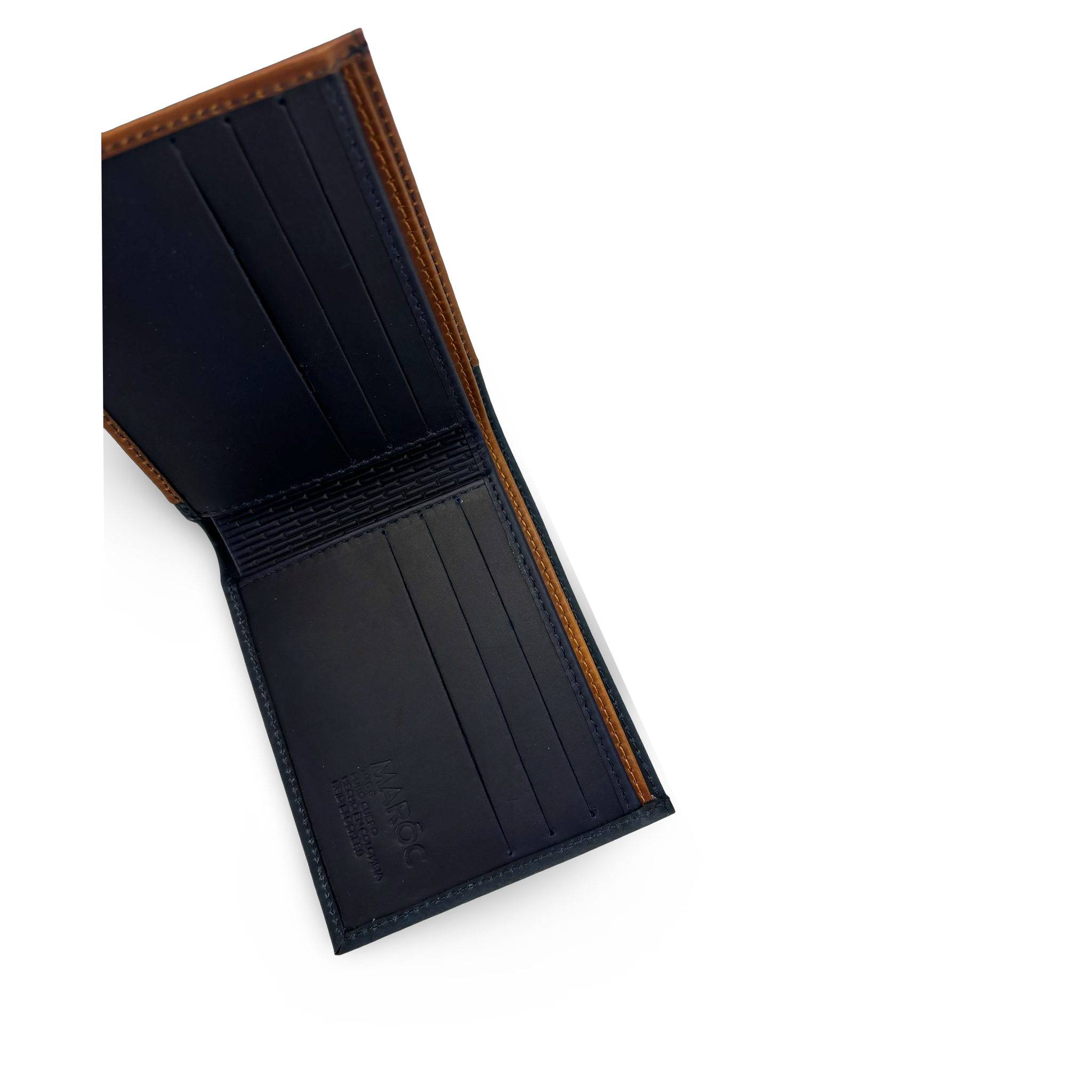 La billetera Maroc 1986 REF 241044 está elaborada en cuero vacuno liso de primera calidad, con un diseño elegante y detalles de costura decorativa en la parte externa. Su combinación en 2 tonos le da un toque moderno y sofisticado, ideal para el hombre contemporáneo.