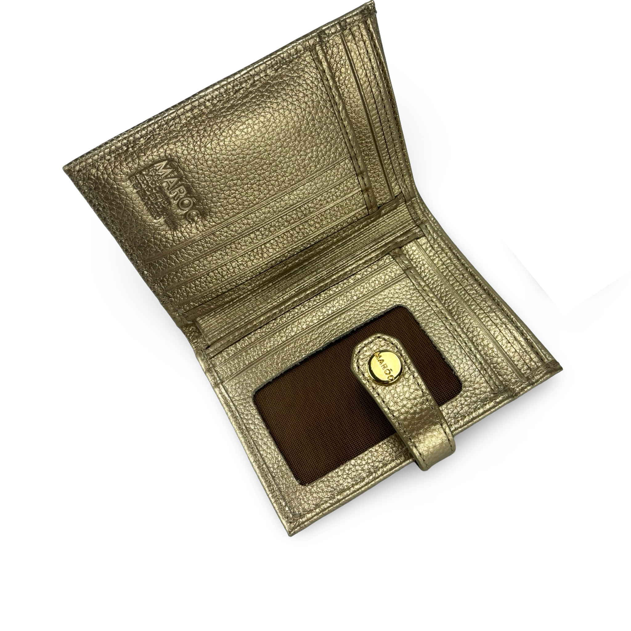 En el interior, revestido completamente en cuero, se destacan 12 compartimientos para tarjetas, permitiéndote llevar contigo documentos, tarjetas bancarias, de fidelización o personales con total orden. También incorpora 2 compartimientos grandes para billetes, lo que ofrece suficiente espacio para organizar dinero de diferentes denominaciones.