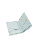 Women's wallet in cowhide leather; 2 bodies; combined (engraved leather and natural smooth leather); clasp closure; 6 card pockets, 2 multi-function pockets; compartment for folded bills, external purse with lid; detail: Metallic appliqué on lid
