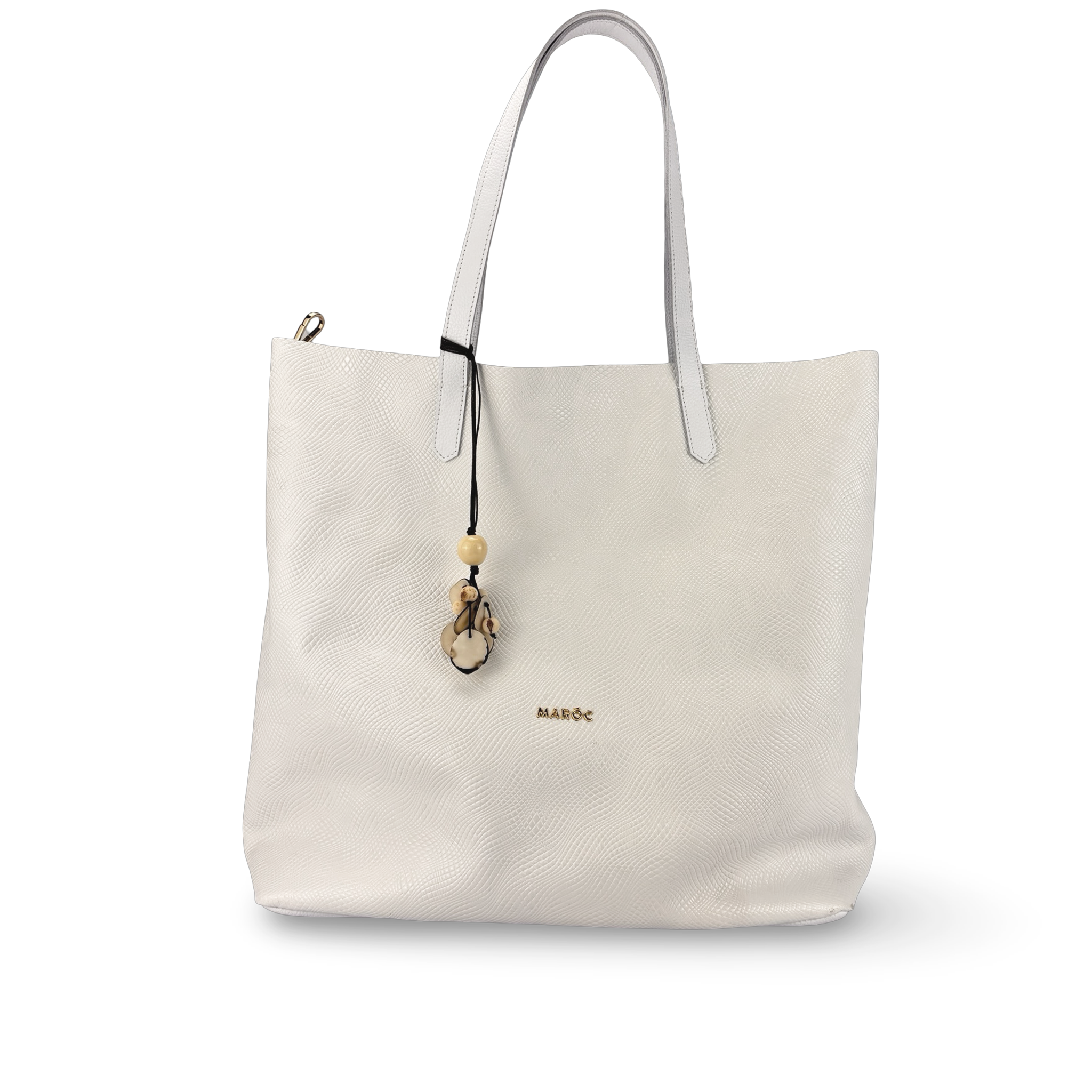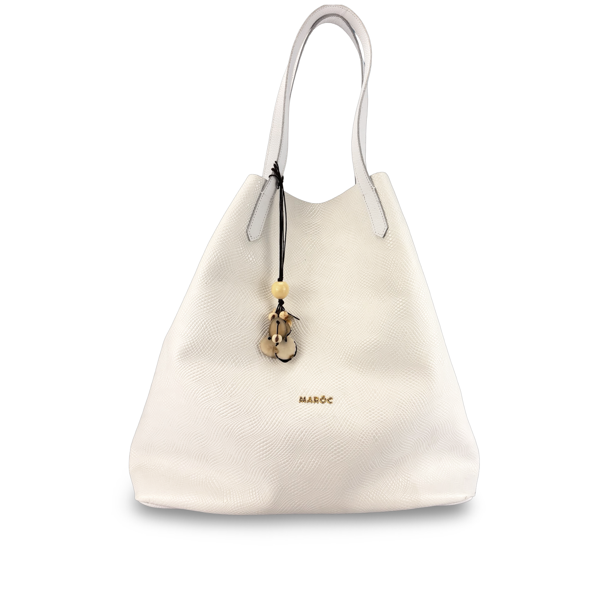 - Tipo: Bolso Tote con herraje decorativo frontal marca Maroc y charm decorativo de conchas