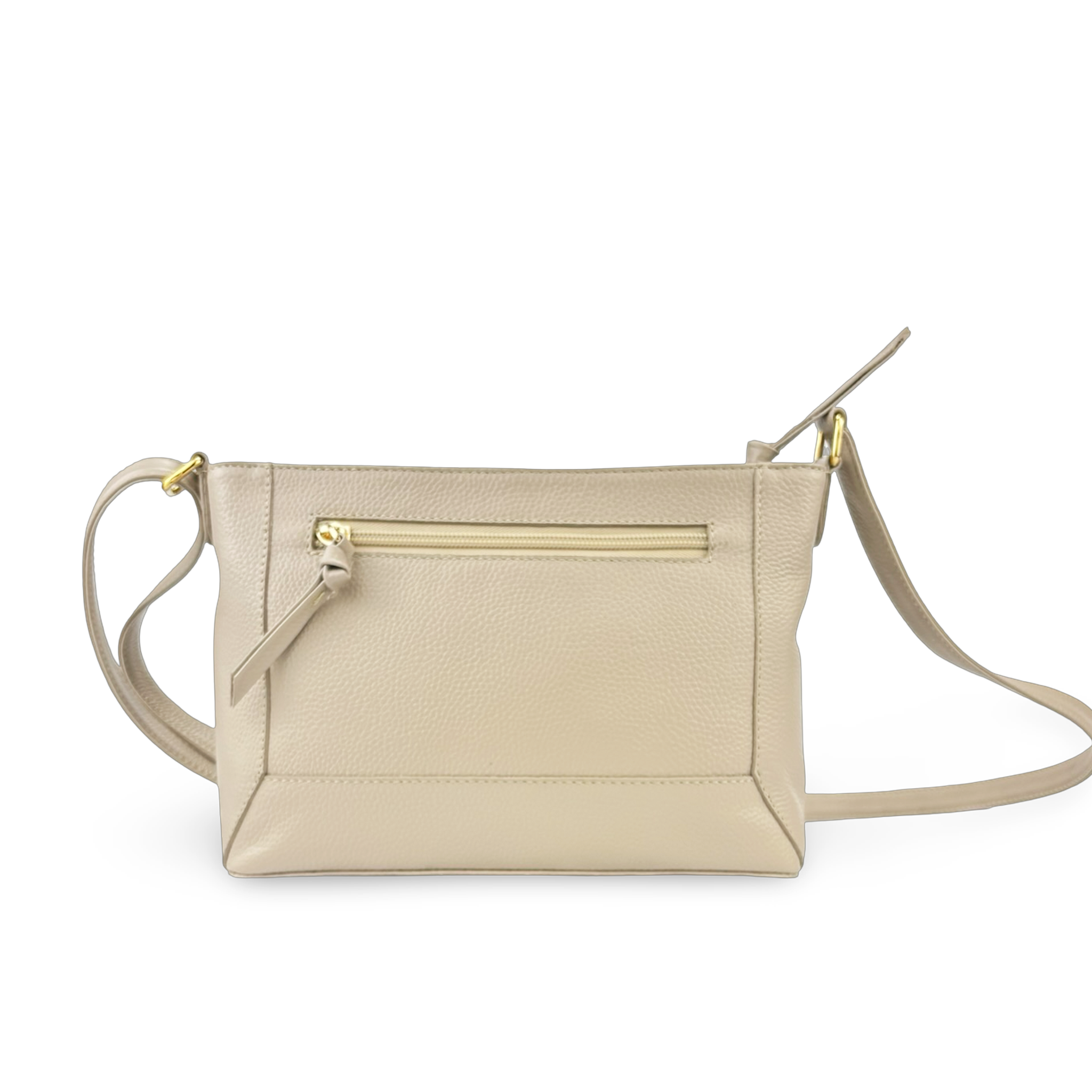 - Compartimentos: Un compartimento amplio con bolsillos internos para guardar celulares u otros accesorios, un compartimento con cierre de cremallera en la parte externa de atrás del bolso
