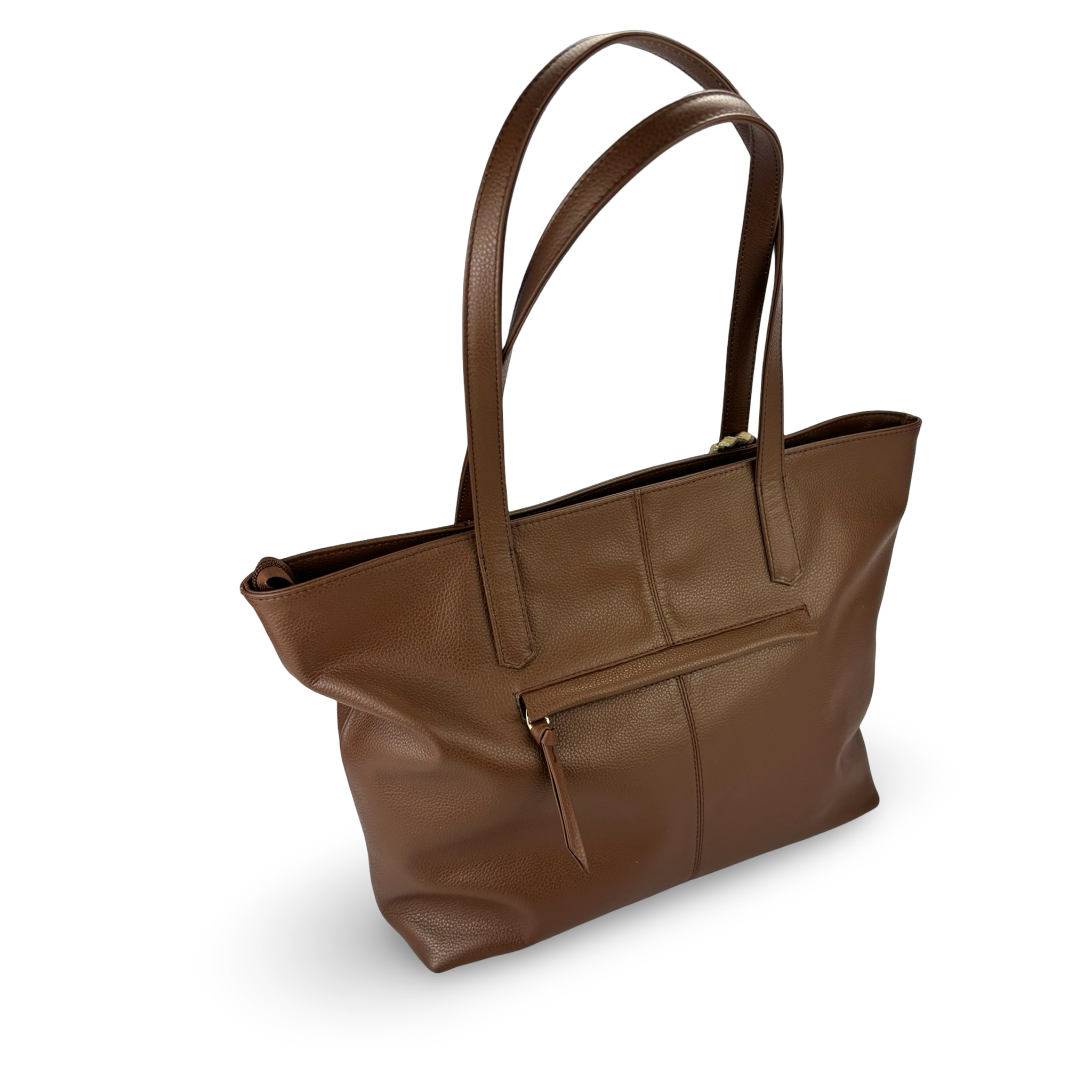 Bolso tipo Shopper para mujer, confeccionado en cuero vacuno liso natural de alta calidad. Diseño amplio, funcional y atemporal, ideal para el día a día o jornadas de trabajo.