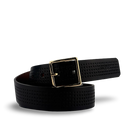Un cinturón, dos estilos. Este cinturón doble faz reversible está elaborado en 100% cuero vacuno colombiano, combinando diseño funcional y elegancia atemporal. Un lado presenta cuero negro con grabado texturizado, ideal para atuendos clásicos y formales, mientras que el reverso en tono coñac liso con orificios cuadrados decorativos ofrece una propuesta más casual y moderna.