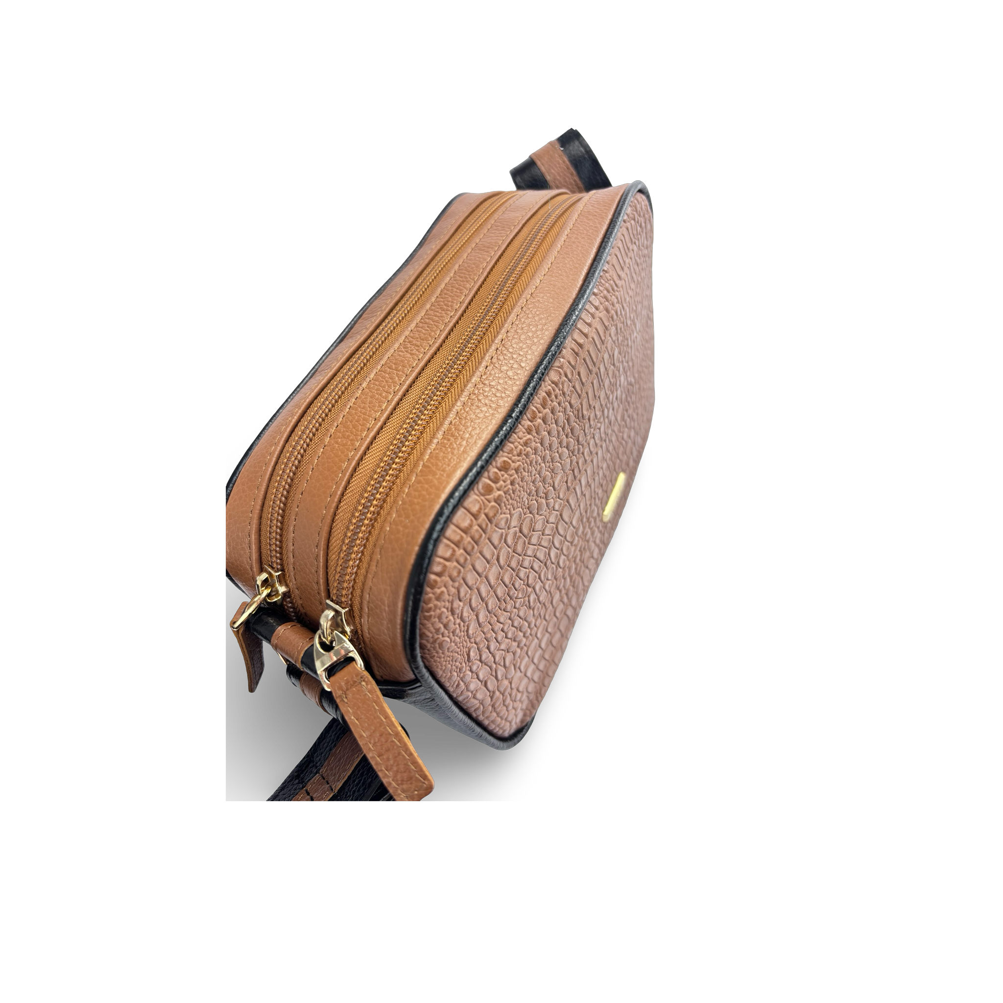 Bolso manos libres para mujer, perfecto para looks casuales y urbanos. Cuenta con doble compartimento principal para una mejor organización, bolsillo interno abierto y bolsillo externo con cierre para acceso rápido. Su diseño incluye aplique metálico frontal del logo Maróc, cierre de cremallera y bandolera ajustable para mayor comodidad. Fabricado en Colombia en cuero vacuno grabado y liso, con forro en poliéster y herrajes resistentes.