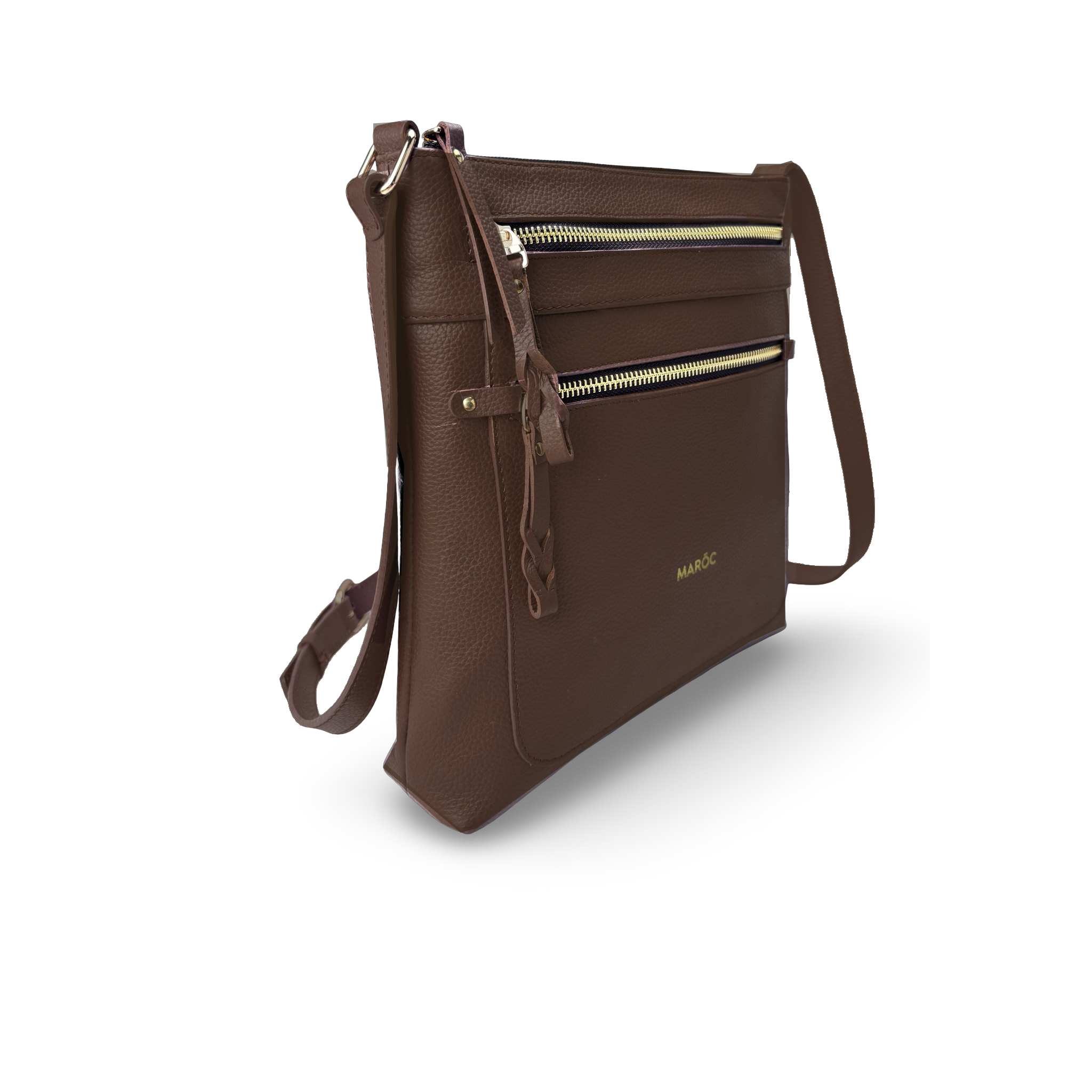 El bolso manos libres para mujer de Maroc es la elección perfecta para quienes buscan elegancia, comodidad y funcionalidad en un solo accesorio. Elaborado en 100% cuero vacuno grabado y liso, destaca por su aplique metálico grabado con el logo de la marca en la parte frontal, que aporta un toque sofisticado y distintivo.