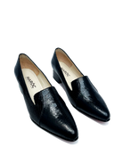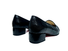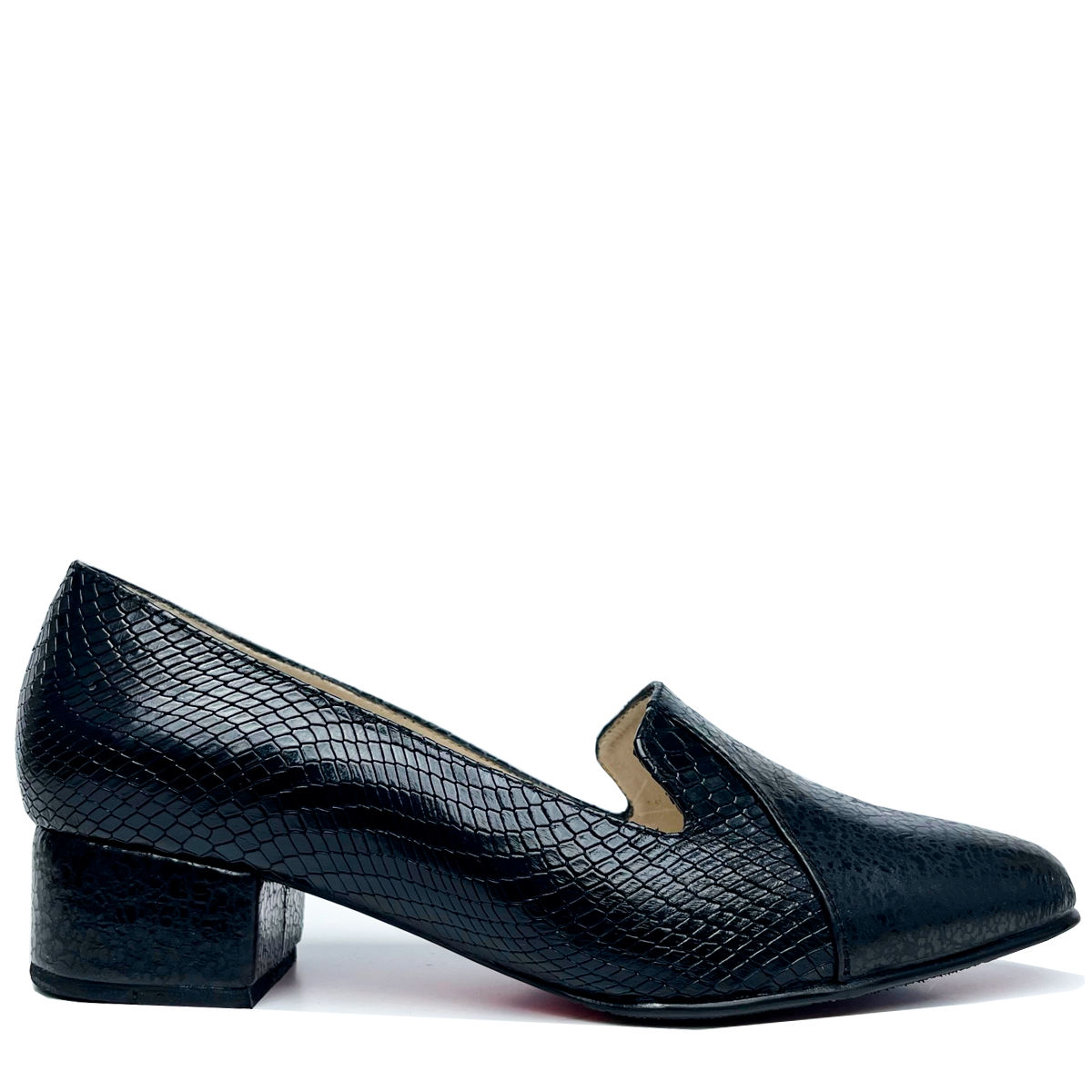 Women's heeled shoe, casual – formal, closed; made of leather, medium heel; finishing (engraved leather and leaves); semi pointed; detail: heel covered in folia leather, Maróc brand