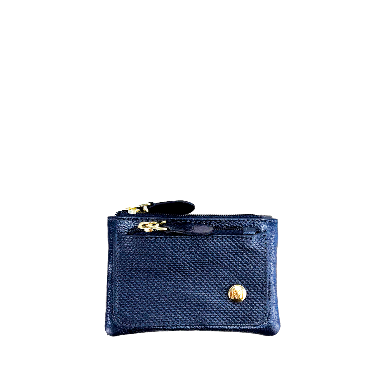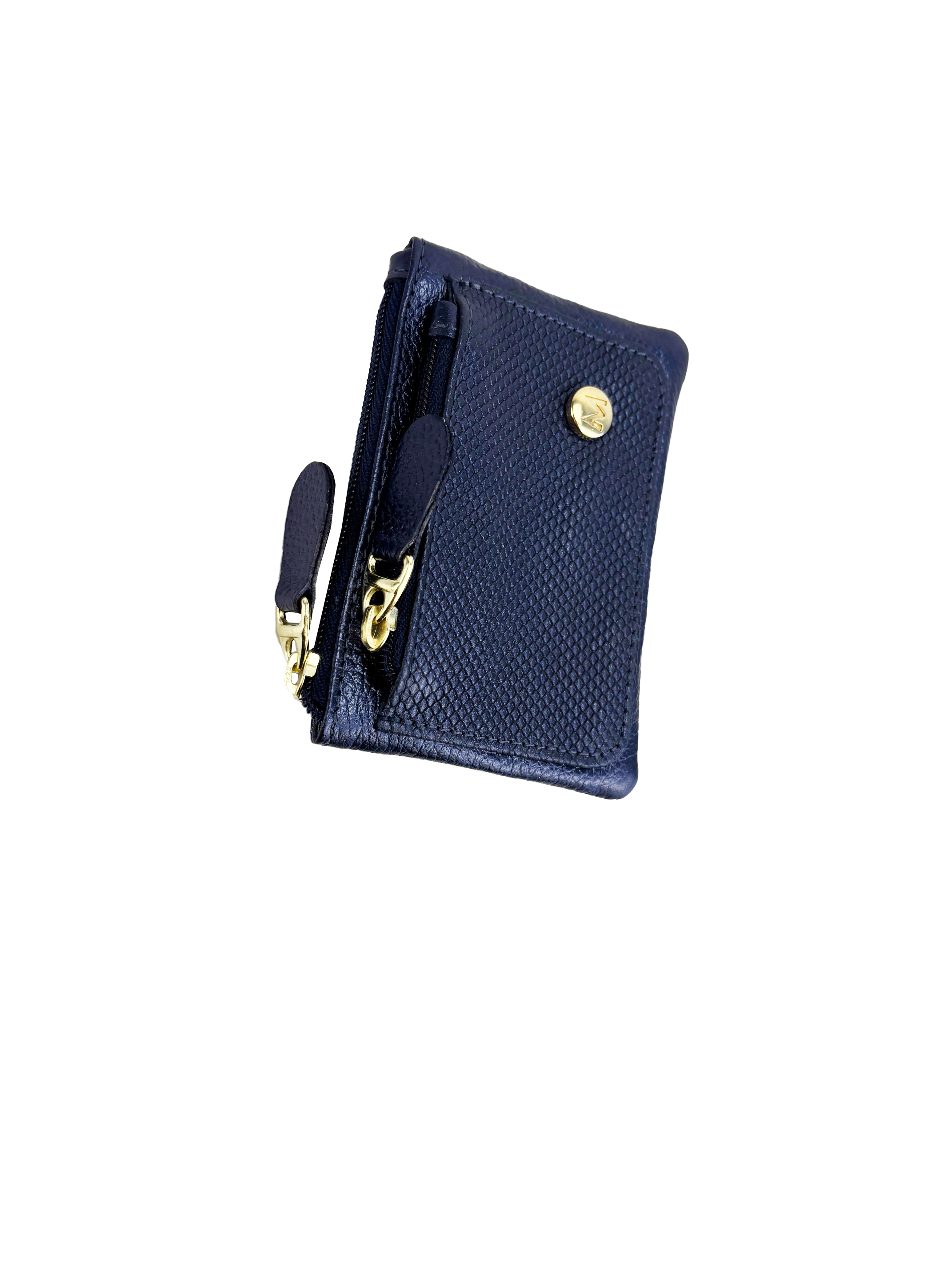 Women's wallet in cowhide leather; engraved leather finish; zipper closure; double internal compartment with card holder.