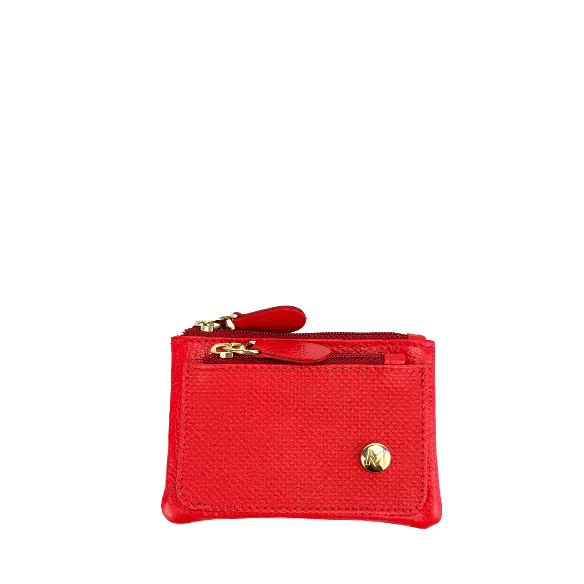 Women's wallet in cowhide leather; engraved leather finish; zipper closure; double internal compartment with card holder.