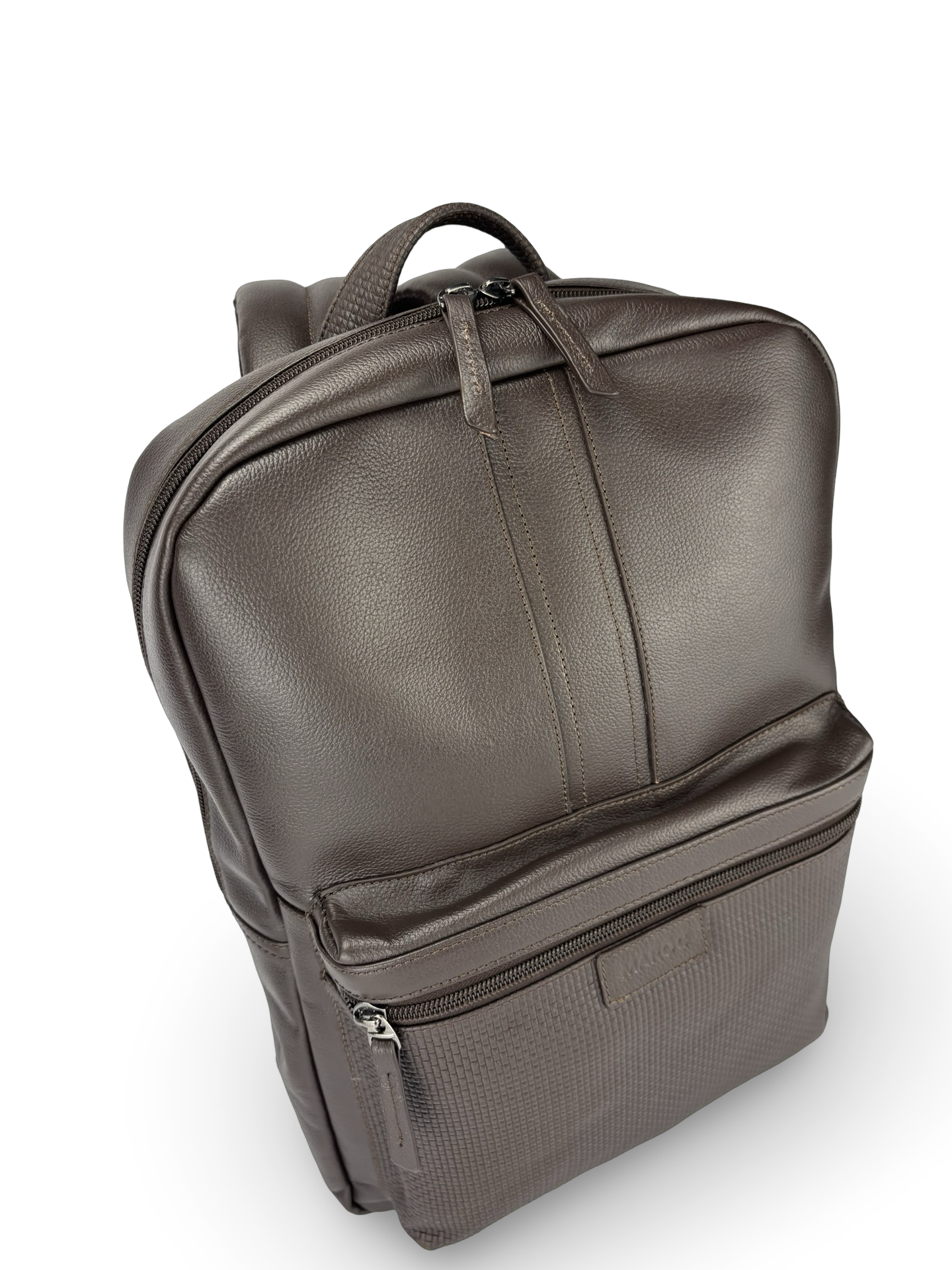 Este morral funcional para hombre de Maroc está diseñado para quienes buscan organización, comodidad y estilo en un solo accesorio. Su diseño práctico y moderno, elaborado en 100% cuero vacuno liso y grabado, ofrece una estructura resistente con porta laptop acolchado (hasta 15”), bolsillo interno enmallado ideal para tablet de 13”, y múltiples compartimentos que facilitan el orden de tus objetos personales y de trabajo. Además, su bolsillo oculto en el espaldar garantiza mayor seguridad en desplazamientos, mientras que sus asas acolchadas y correa posterior tipo trabilla lo convierten en el compañero perfecto para viajes o jornadas urbanas.