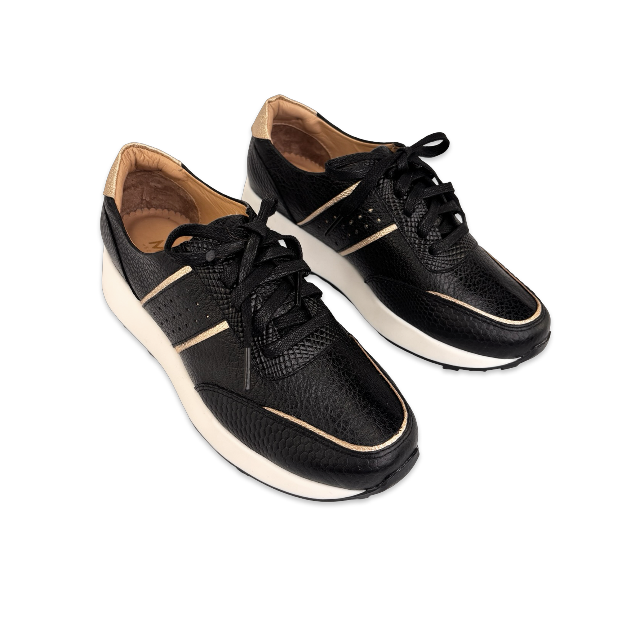 Women's Tennis/Tie Shoe; made of leather; color combination; combined leather finish: (leather engraved with designs, smooth die-cut leather and natural smooth leather); with flat cord; semi-sports sole with low running platform; Maroc brand