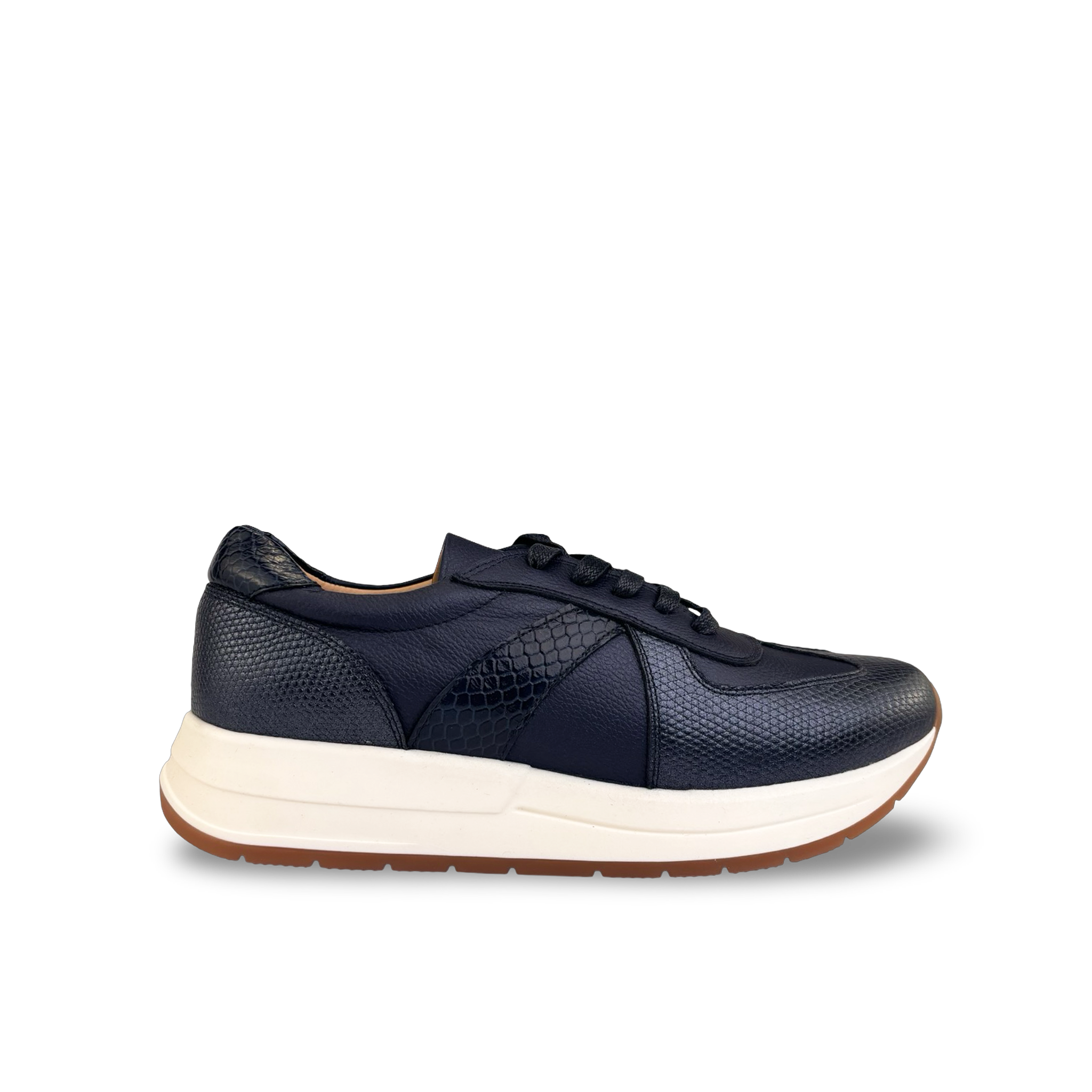 Tenis para mujer de estilo moderno y versátil, perfectos para un look casual con un toque semiformal. Elaborados en 100% cuero vacuno liso, grabado y metalizado, destacan por su mezcla de texturas y acabado brillante que eleva cualquier outfit. Su suela de caucho antideslizante de 3 cm brinda comodidad y estabilidad durante todo el día, mientras que el cordón encerado añade un detalle sofisticado. Dimensiones: Suela 3 cm de alto aproximadamente
