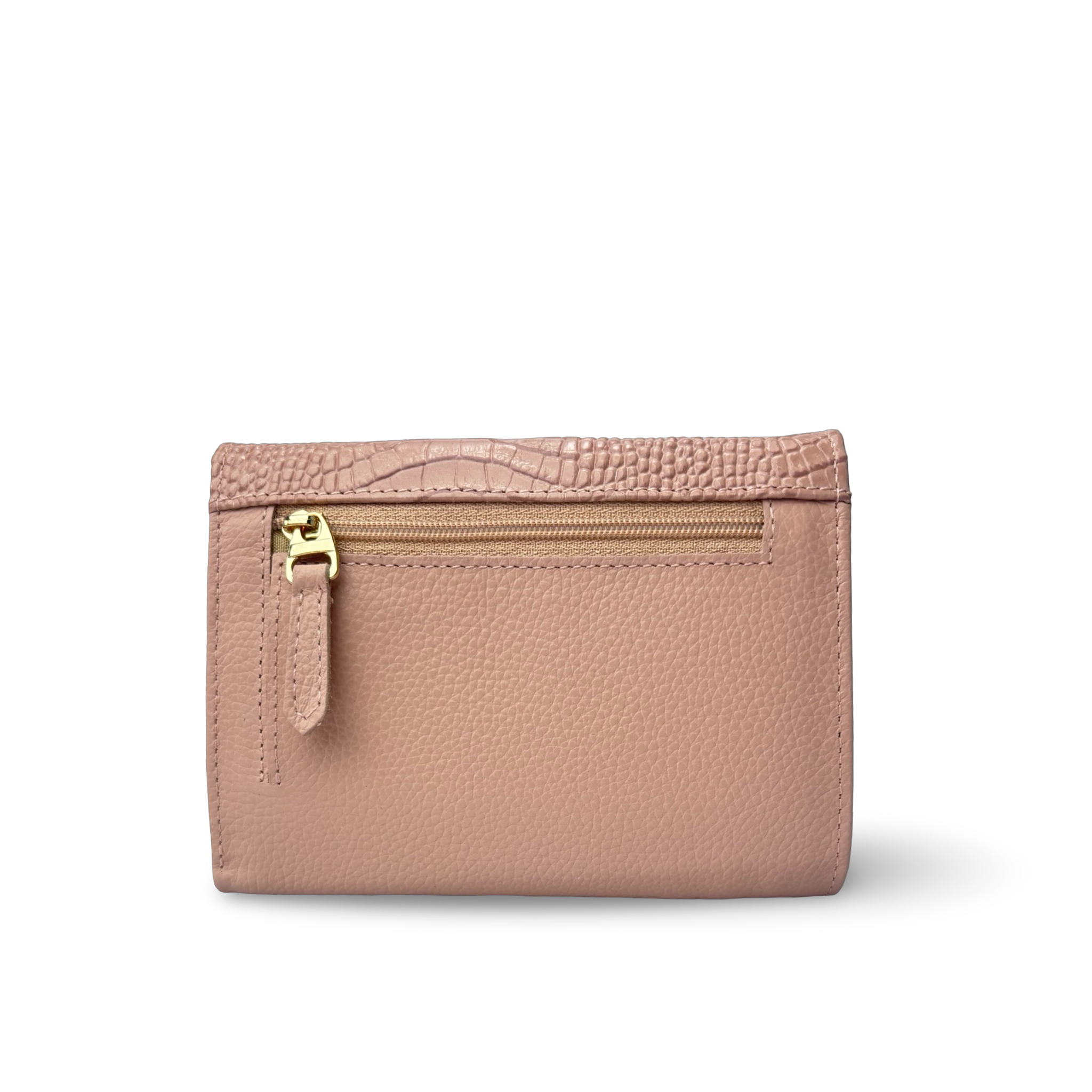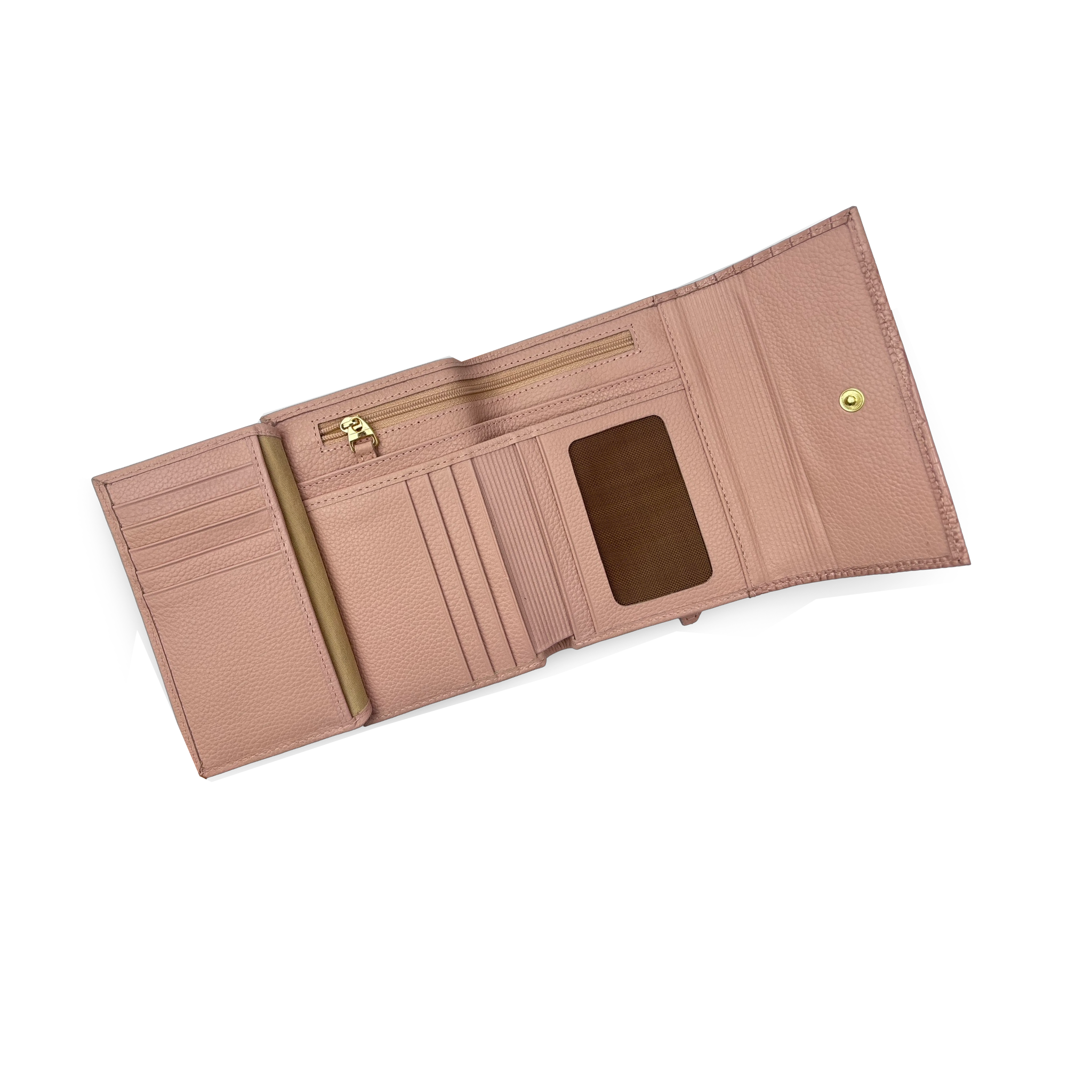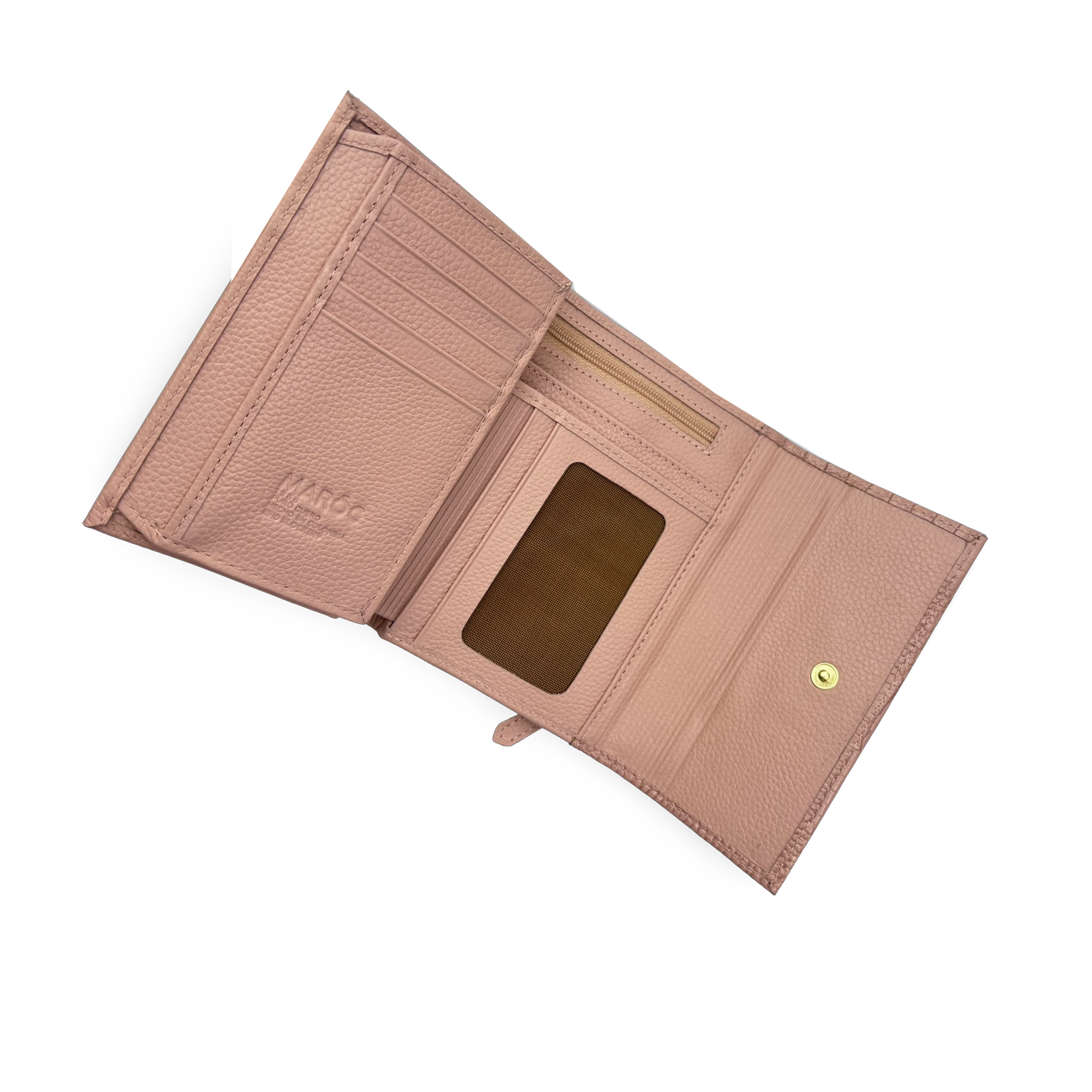 Billetera para mujer elaborada en 100% cuero vacuno liso y grabado, diseñada para ofrecer organización, seguridad y estilo. Cuenta con 16 compartimentos para tarjetas, doble fuelle para billetes, monedero interno y externo con cremallera, además de ventanas transparentes para fotos o documentos. Su cierre con botón a presión y el sistema RFID Blocker garantizan protección y practicidad en todo momento.