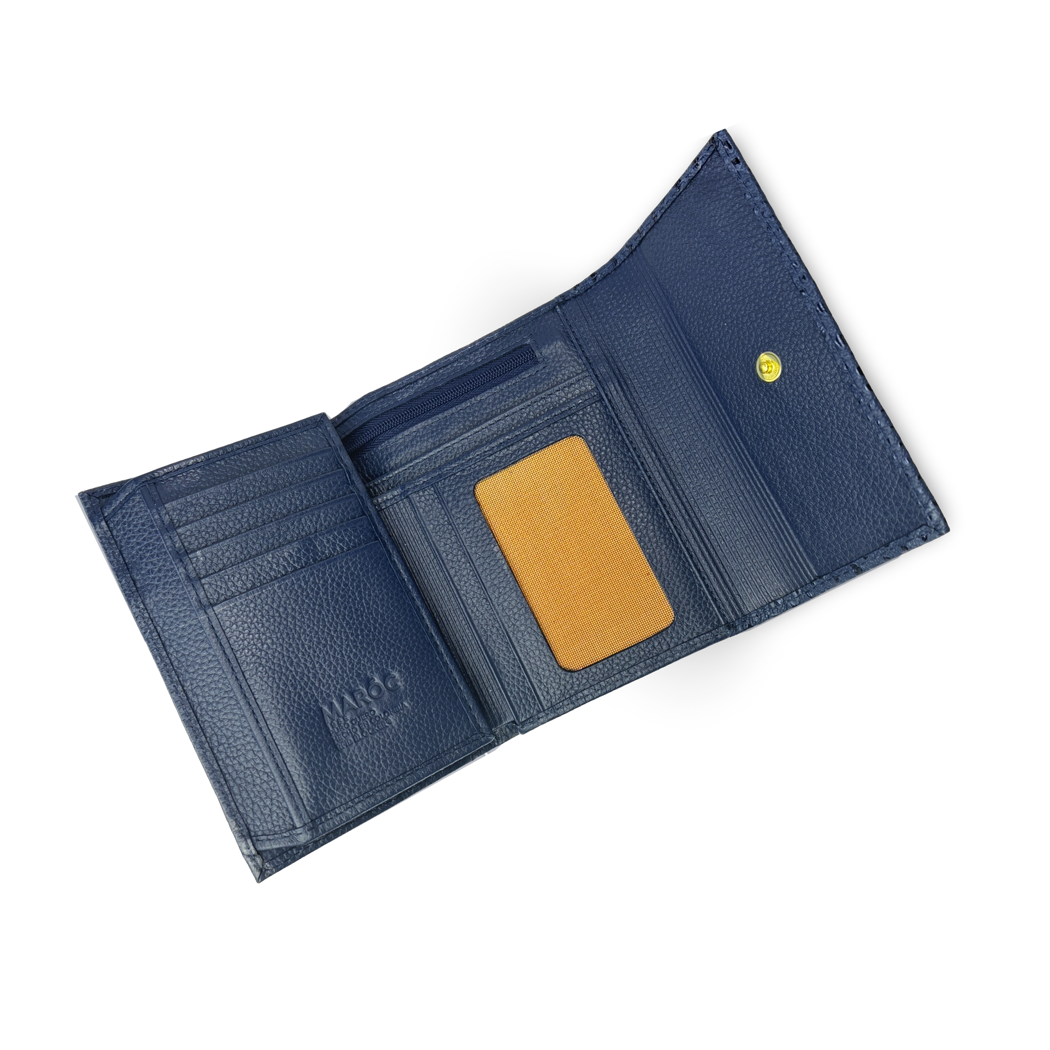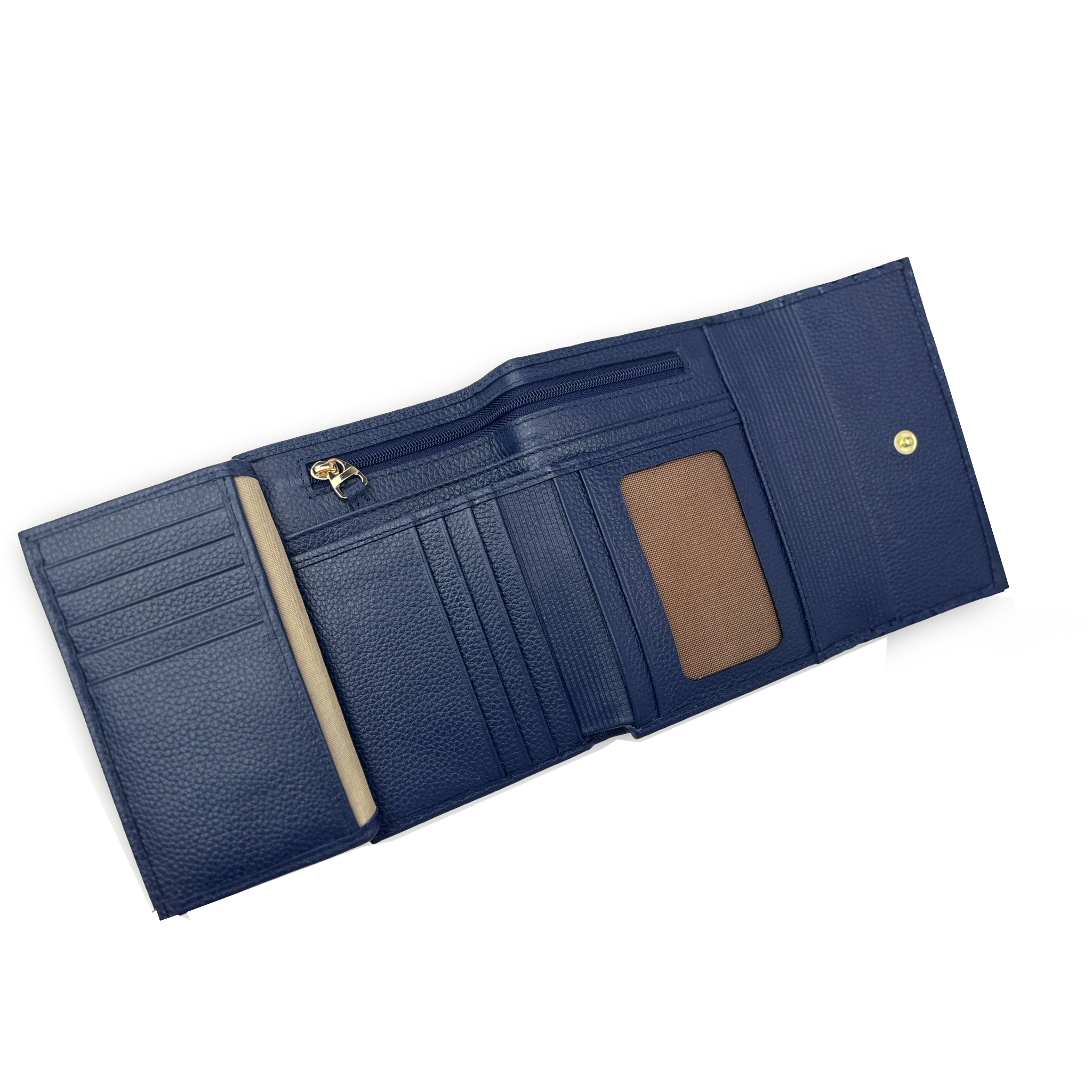 Billetera para mujer elaborada en 100% cuero vacuno liso y grabado, diseñada para ofrecer organización, seguridad y estilo. Cuenta con 16 compartimentos para tarjetas, doble fuelle para billetes, monedero interno y externo con cremallera, además de ventanas transparentes para fotos o documentos. Su cierre con botón a presión y el sistema RFID Blocker garantizan protección y practicidad en todo momento.