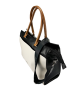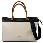 Maletín Mujer en cuero vacuno terminación cuero combinado (cuero grabado y cuero liso natural); doble compartimiento interno con cierre principal de cremallera; compartimento central con: bolsillo monedero con cierre y porta celular; bolsillo frontal asegurado por un botón imantado; bolsillo trasero con cierre; asas redondas; detalle: asa ancha tipo reata bandolera graduable y desmontable con contramarcado Marōc. Marca Marōc.