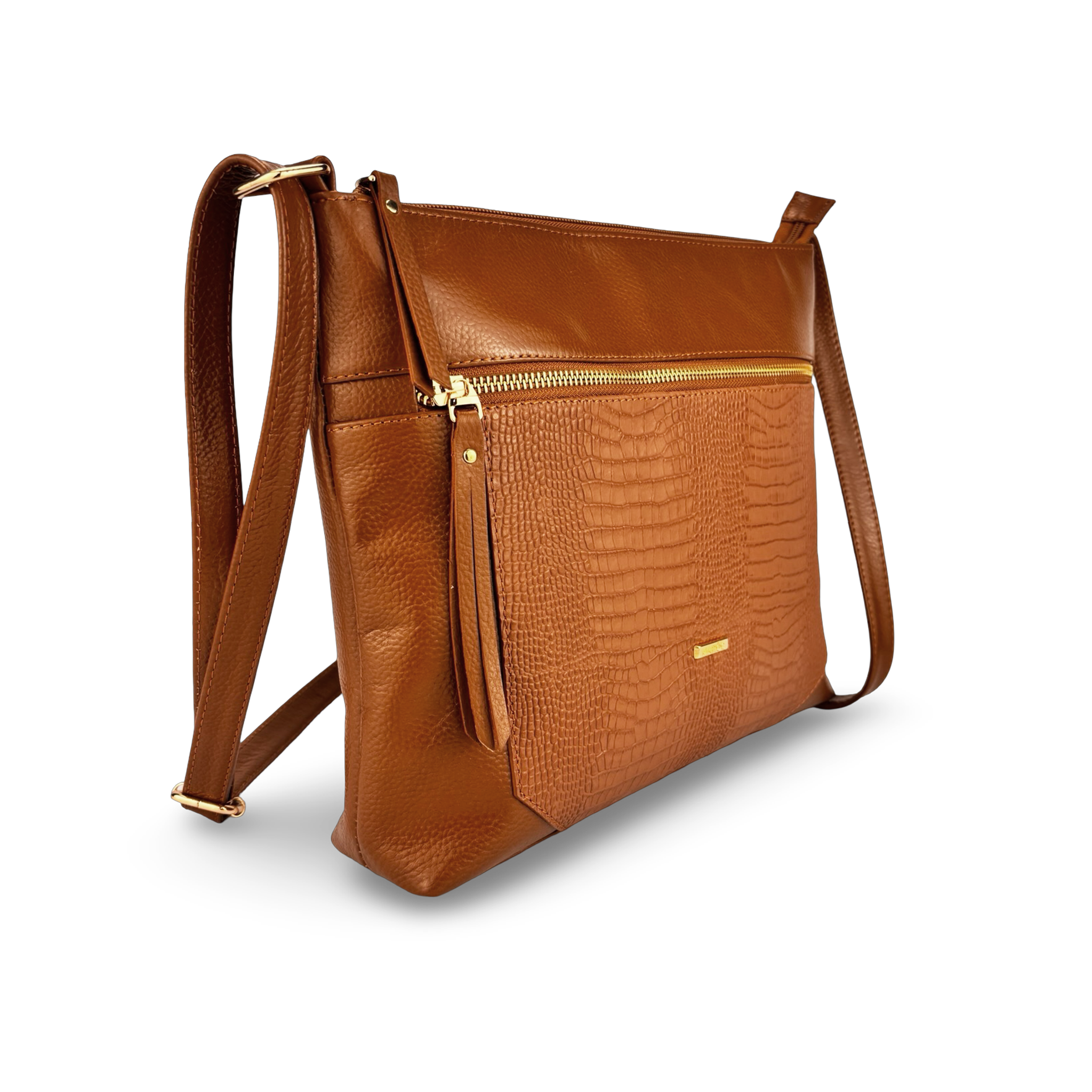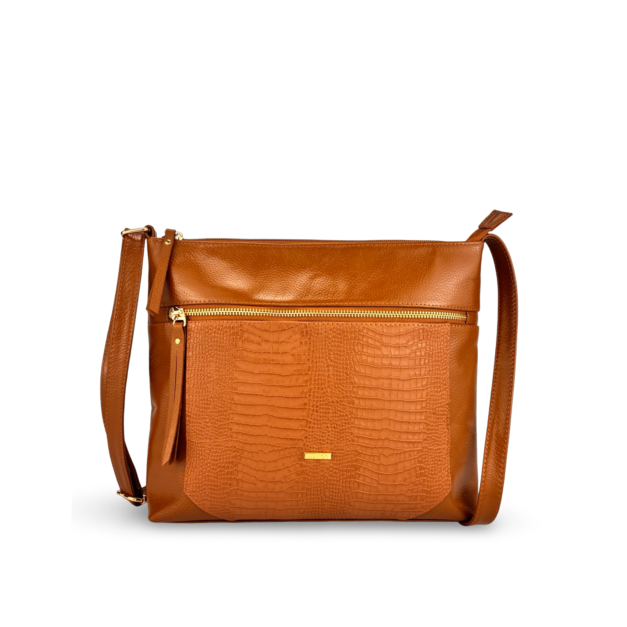 Cada detalle de la Bandolera REF: 127133 refleja la artesanía colombiana de excelencia. Su diseño inteligente cuenta con un bolsillo exterior con cremallera para un acceso rápido a tus esenciales, y un distintivo detalle de textura tipo cocodrilo en la parte frontal que añade un toque de exclusividad. El cuero colombiano es reconocido mundialmente por su durabilidad, suavidad y la belleza natural que mejora con el tiempo, asegurando que tu bolso no solo sea un accesorio, sino una inversión duradera.