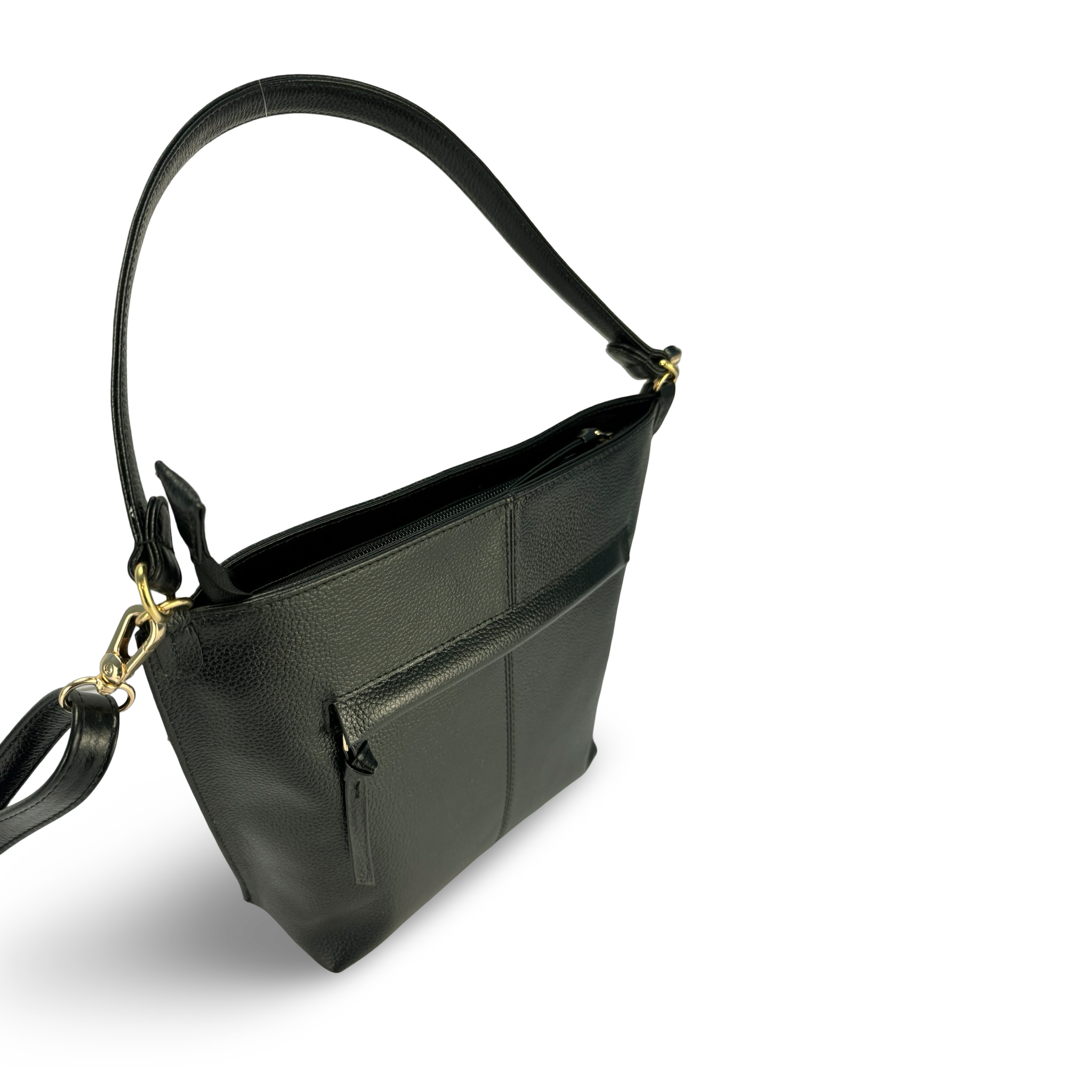 Diseñado para llevarlo de dos formas: al hombro o cruzado, gracias a su correa graduable. Cuenta con doble compartimento, bolsillo interno con cierre, bolsillo abierto para celular o accesorios y bolsillo externo con cremallera, ideales para mantener todo en orden. Incluye portallaves interno con mosquetón para mayor practicidad. Dimensiones aproximadas: Alto 21 cm x Ancho 29 cm x Fondo 9 cm