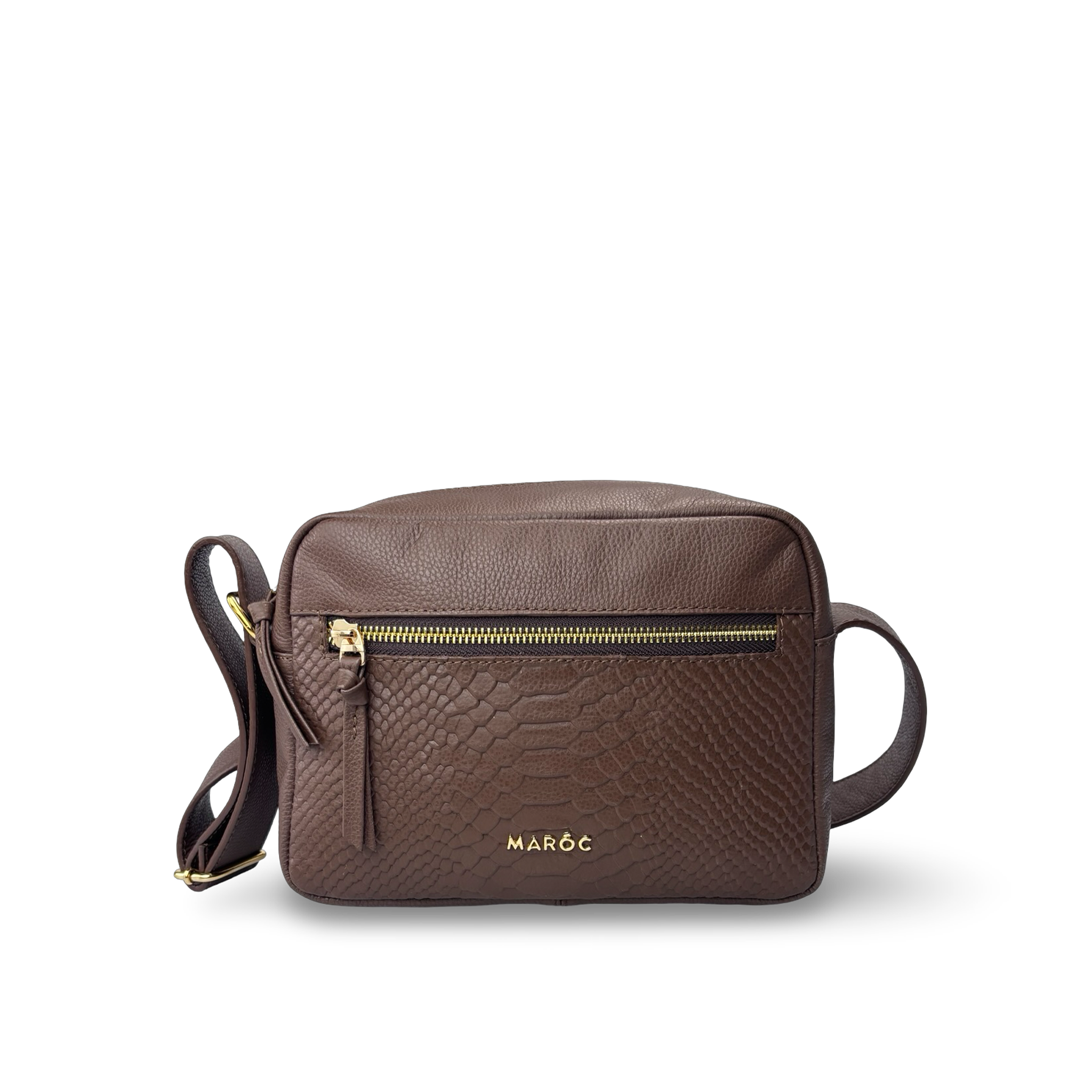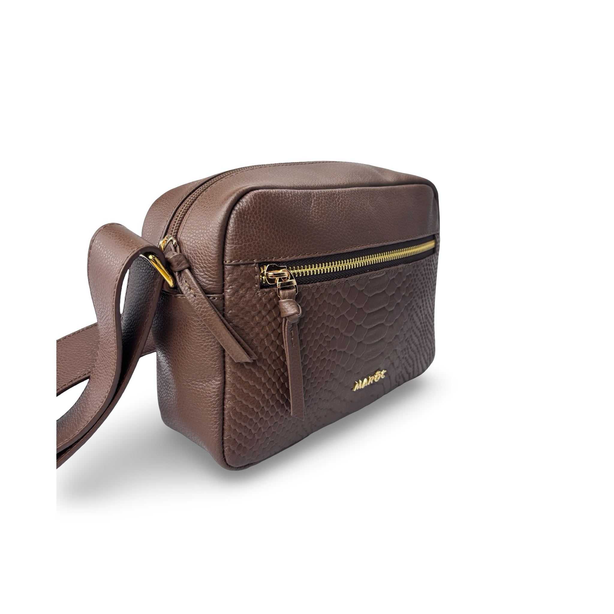 Complementa tus looks con el bolso manos libres Maroc, una pieza moderna y sofisticada elaborada en 100% cuero vacuno grabado, metalizado y liso. Su diseño compacto con aplique metálico dorado frontal refleja elegancia y estilo urbano. Cuenta con varios compartimentos para mantener todo en orden: un bolsillo interno con cremallera, otro abierto para celular o accesorios y un bolsillo externo funcional. Incluye correa ancha ajustable y portallaves interno con mosquetón, ideal para llevarlo cruzado o al hombro. Dimensiones aproximadas: Alto 16 cm x Ancho 23 cm x Fondo 9 cm. Hecho artesanalmente en Colombia con herrajes de alta calidad.