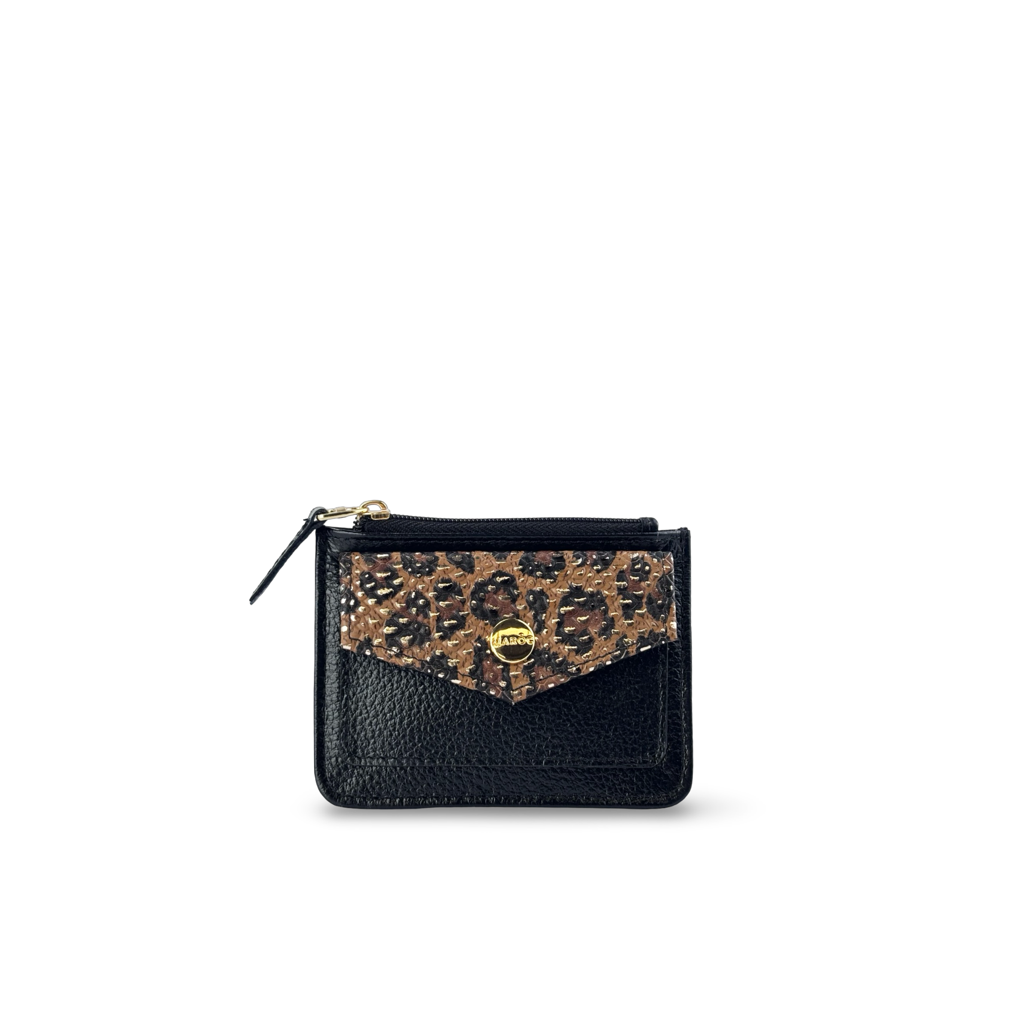 Este tarjetero para mujer en cuero 100% vacuno combina practicidad y estilo en un accesorio compacto y elegante. Con dimensiones aproximadas de 9 x 12 cm, incluye en la parte frontal una solapa con cierre de broche a presión y logo Maroc, además de un monedero con cremallera para guardar billetes o monedas con total seguridad.